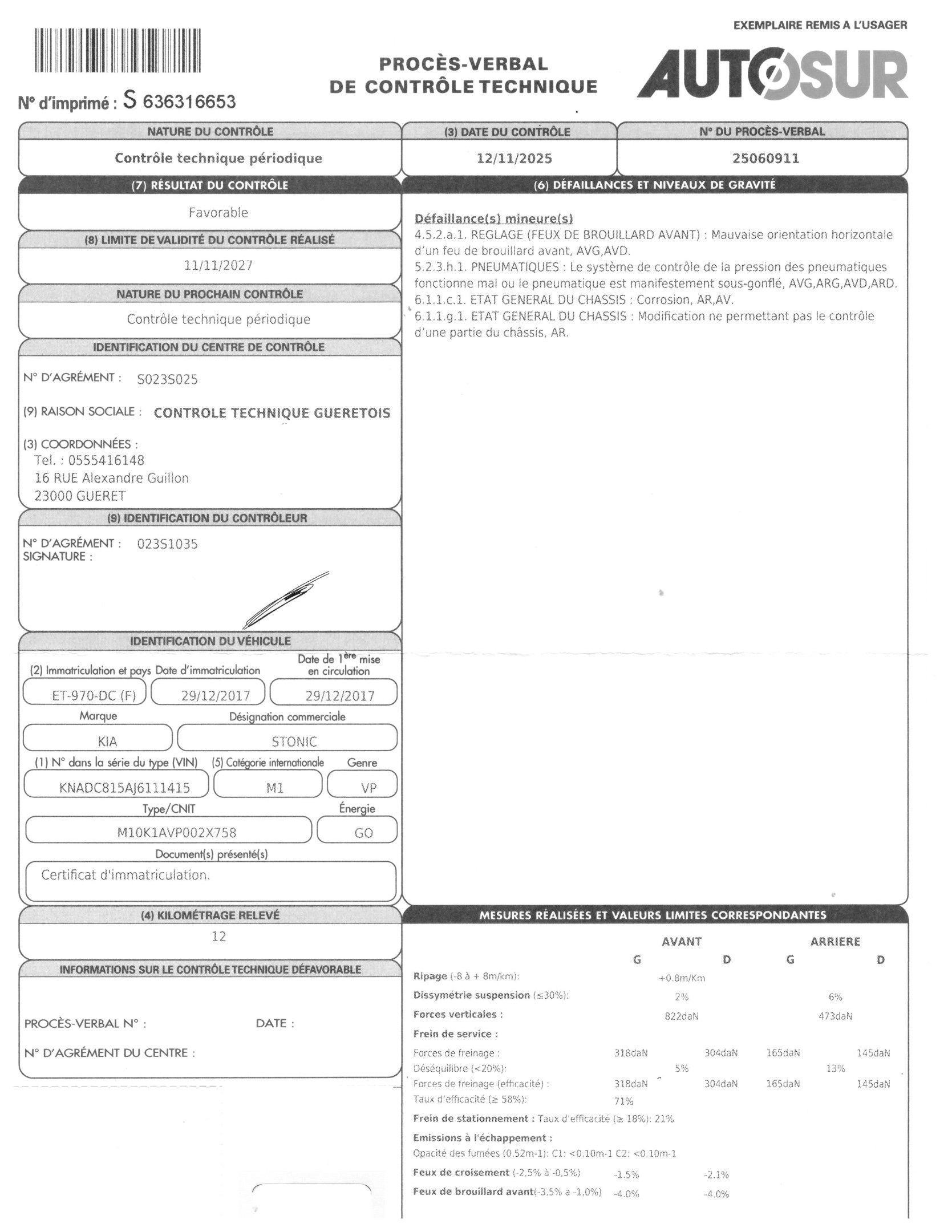 Vehicle with only 15 kms (estate). Private car KIA Stonic 1.6 CRDi 16V ISG 110 hp, registration ET-970-DC, 1st registration on 29/12/2017, type VP, body Break, diesel energy, 6hp tax, low mileage 15km approximately, good condition. Sold with registration document, roadworthiness test (72€ payable by purchaser) and 1 key.