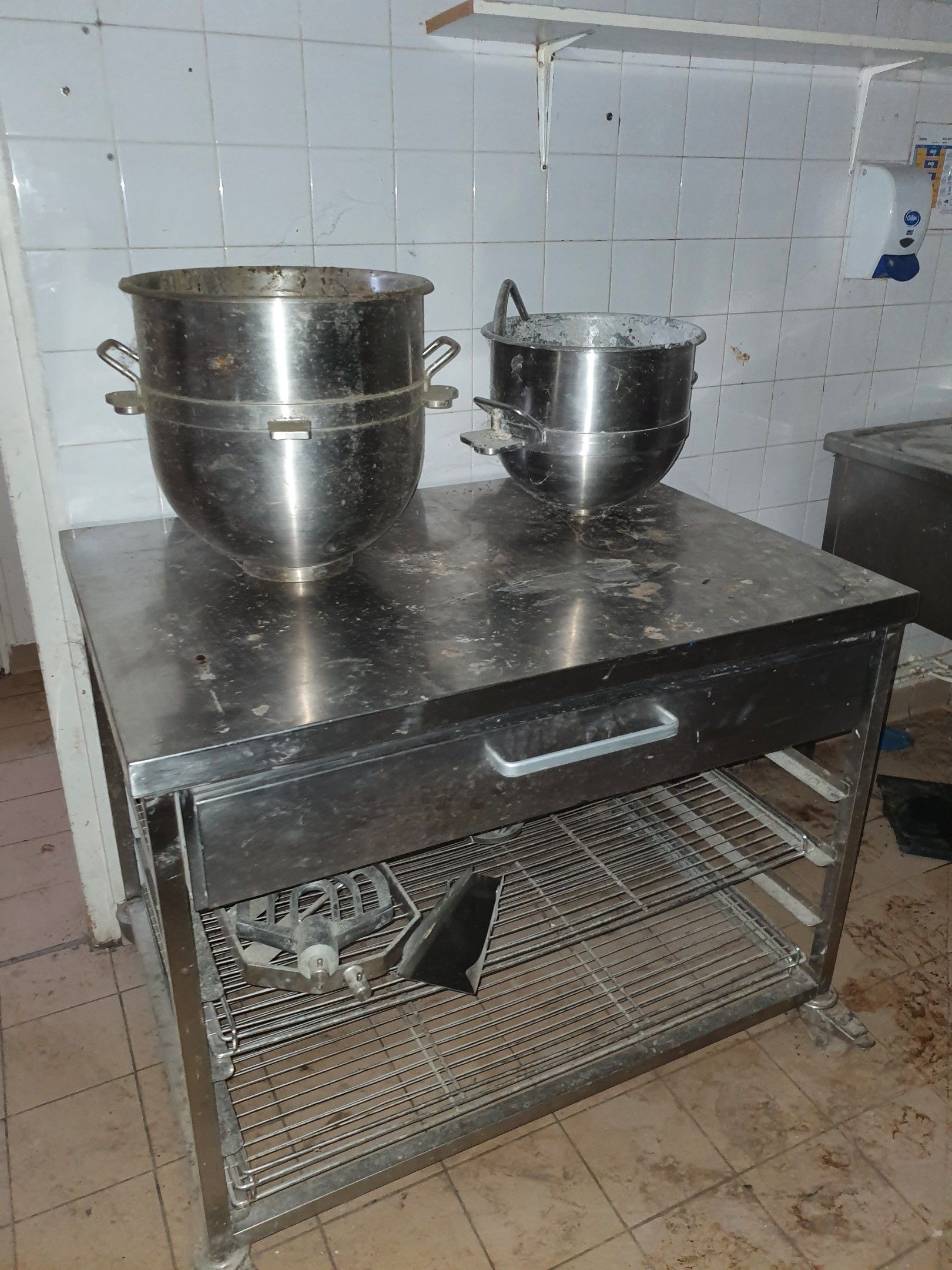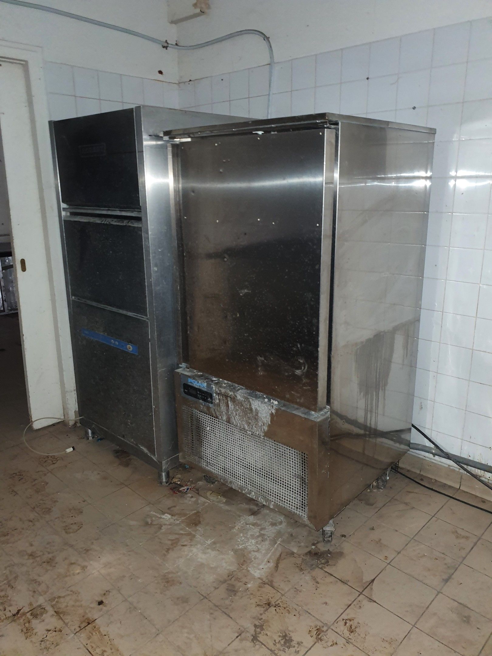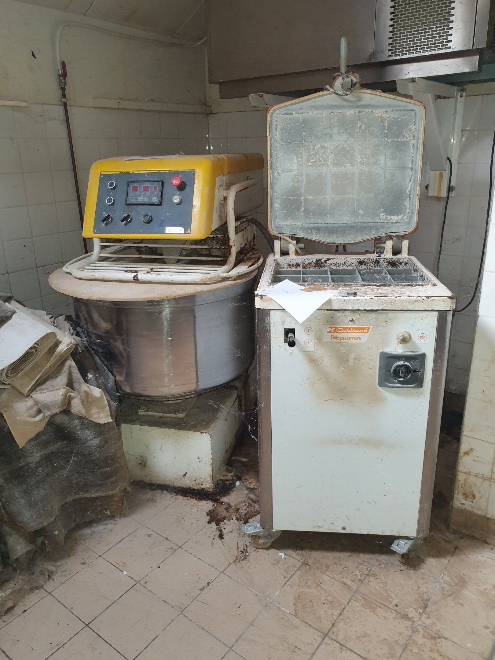 On designation, in Saint Sébastien (23), following seizure, sale in one lot, as is and without any guarantee of functioning, standardisation, description, on photos: swing with MMM/SPF shaper, Loiselet spiral mixer, Bertrand Puma divider, Arévalo water cooler, Polar cold room, Sinmag mixer with vats, whisk, loading conveyor, stainless steel refrigerated tower with granite tray, Polar stainless steel cold room, Hobart dishwasher, stainless steel dishwasher with left-hand drainer, stainless steel table with single-drawer ladder rack, slicer, rear panetiere cabinet, small refrigerated display case for rear service, refrigerated display case for pastries, dry display case for pastries. Must be collected within 15 days of the sale by appointment, without damage, in compliance with the rules of dismantling, particularly electrical and plumbing (otherwise the unit will be considered abandoned). It is important to note that there is only one possible exit: the door is a standard size. All equipment must be removed.