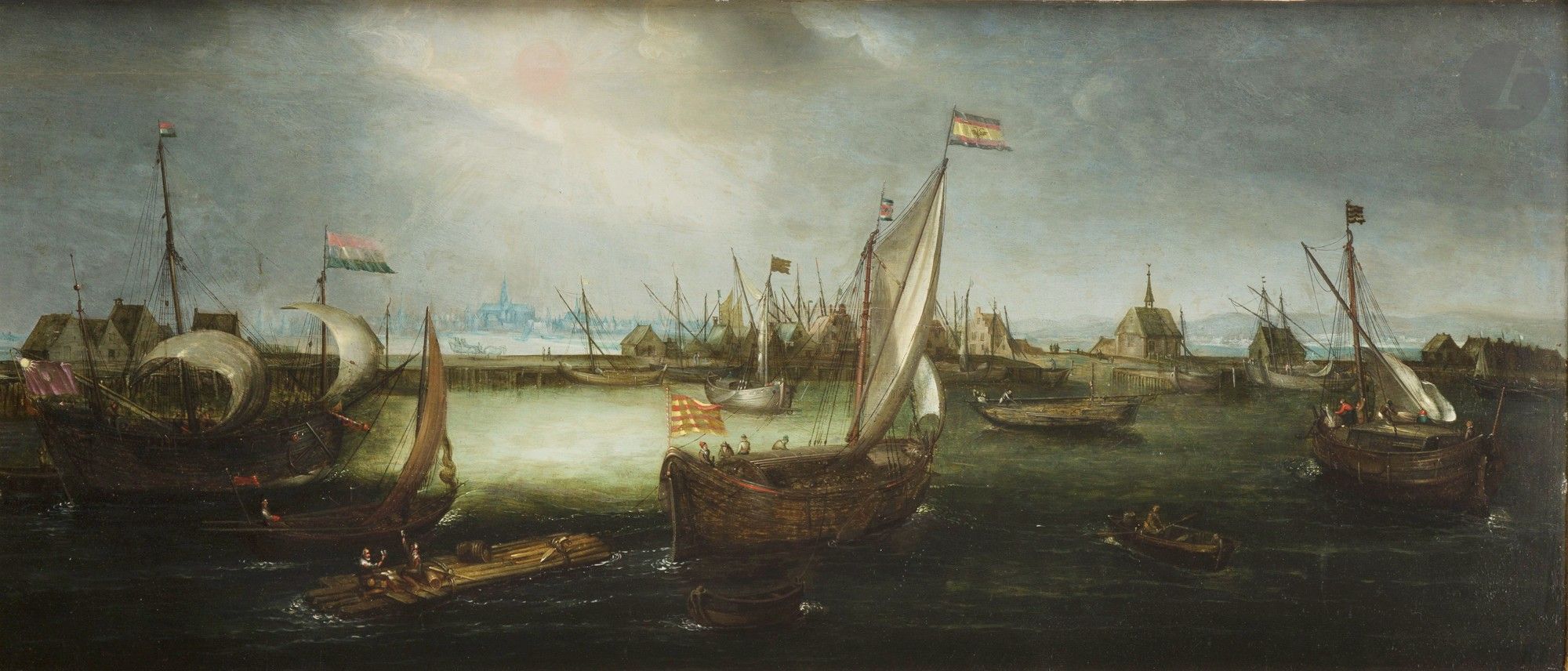 "Fishermen's boats near the beach at Scheveningen" is similar to the panel (42 x 96 cm) presented for sale by Christie's on 31 January 2024 (no. 221).