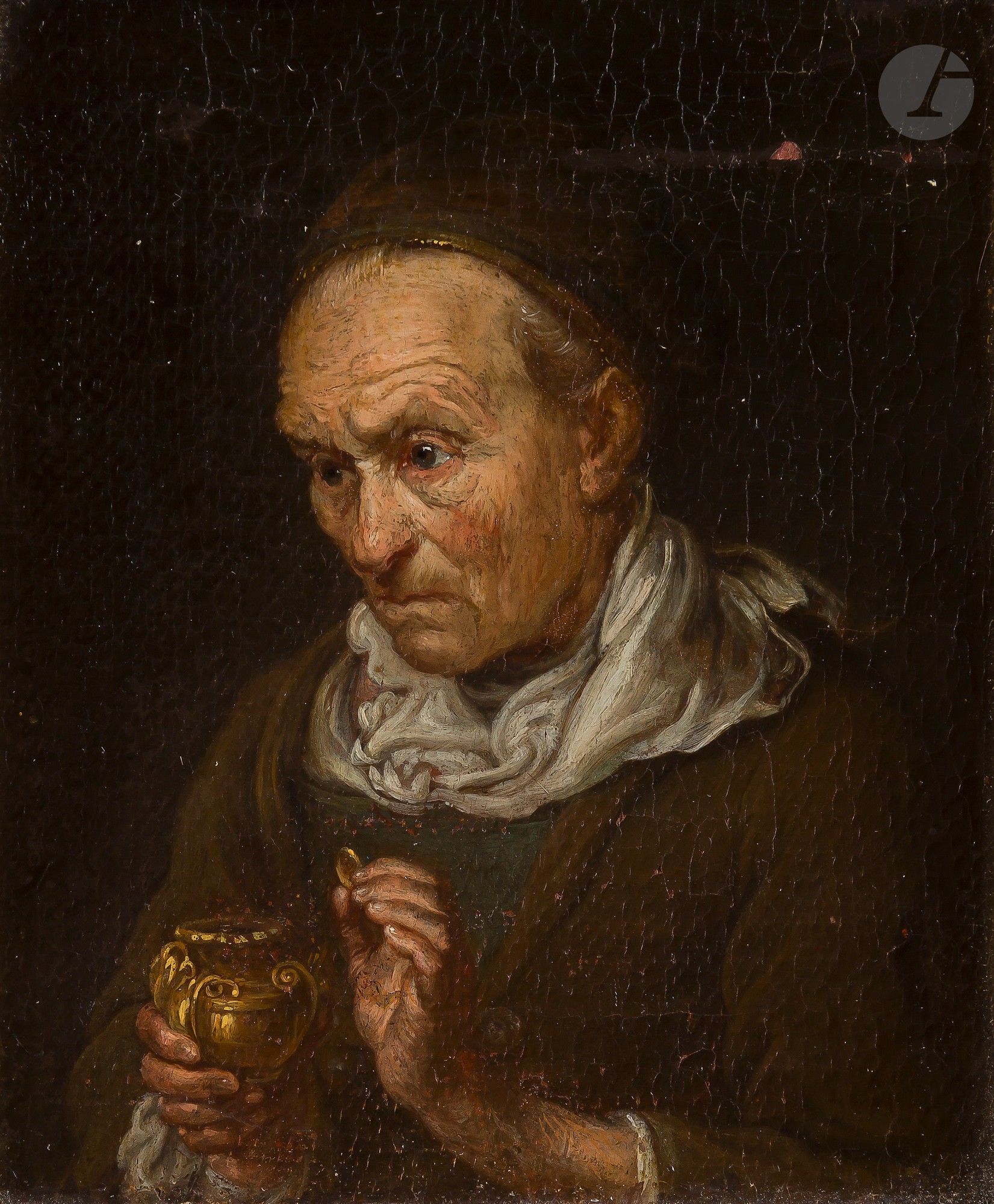 Old man and his bottle; Old woman holding a cup