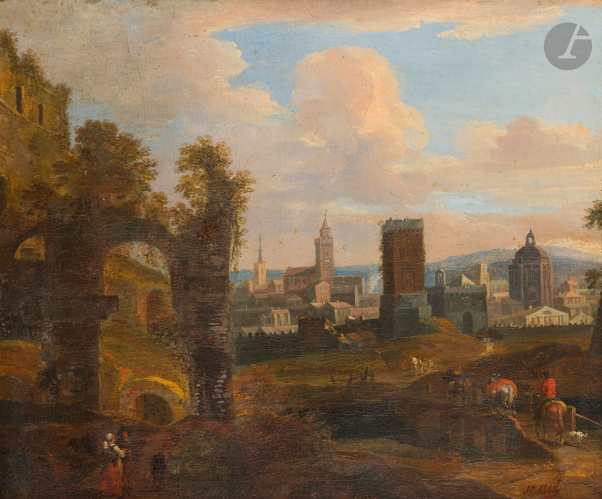 Landscape with a Bohemian Woman in Front of a Town