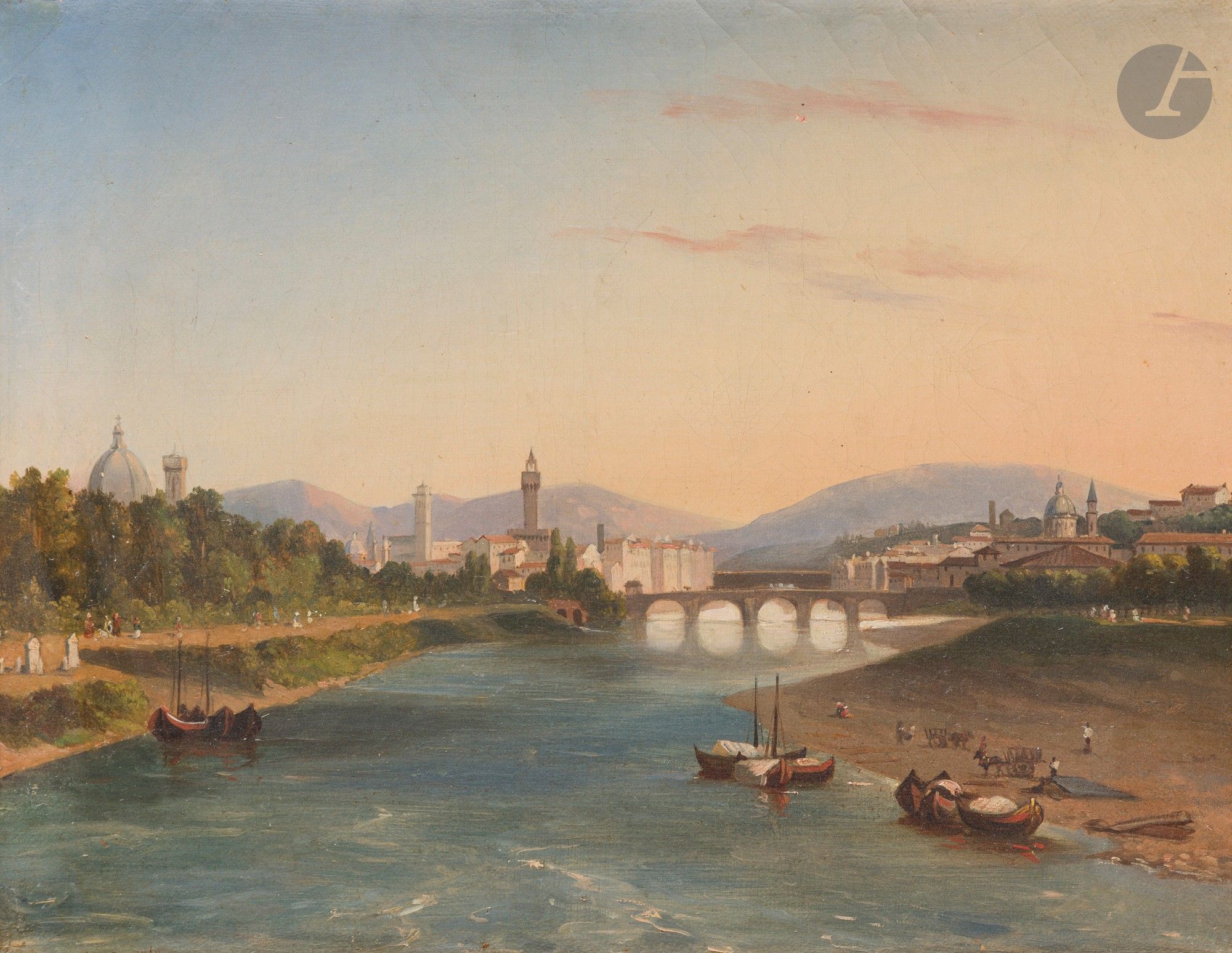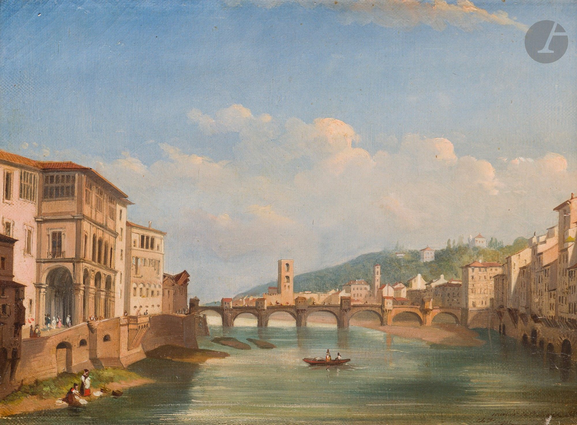 Ch. HUGOT ? Florence, animated views of the banks of the Arn…