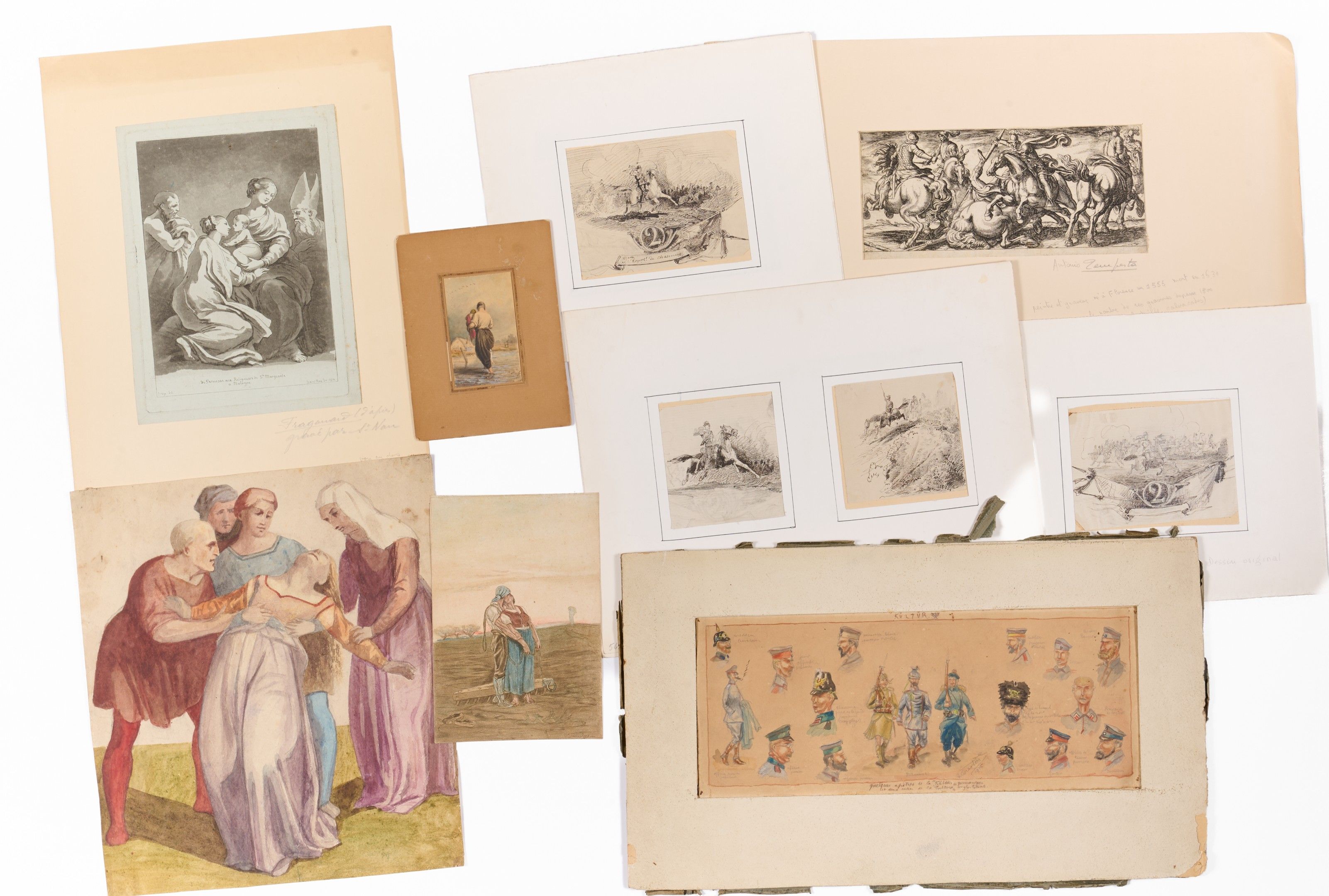 - a caricature entitled "Quelques apôtres de la Kültür germanique" depicting German soldiers in their uniforms, signed and dated "1915";