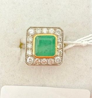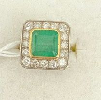 RING IN 18 K (750/°°) GOLD SET WITH A CAREENED EMERALD IN 1 DIAMOND SETTING, PB 9.2 G TD 54.5