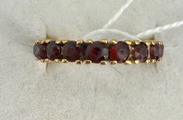 American wedding ring in 18K (750/°°) gold set with garnets. TD 50, weight 2.5 g
