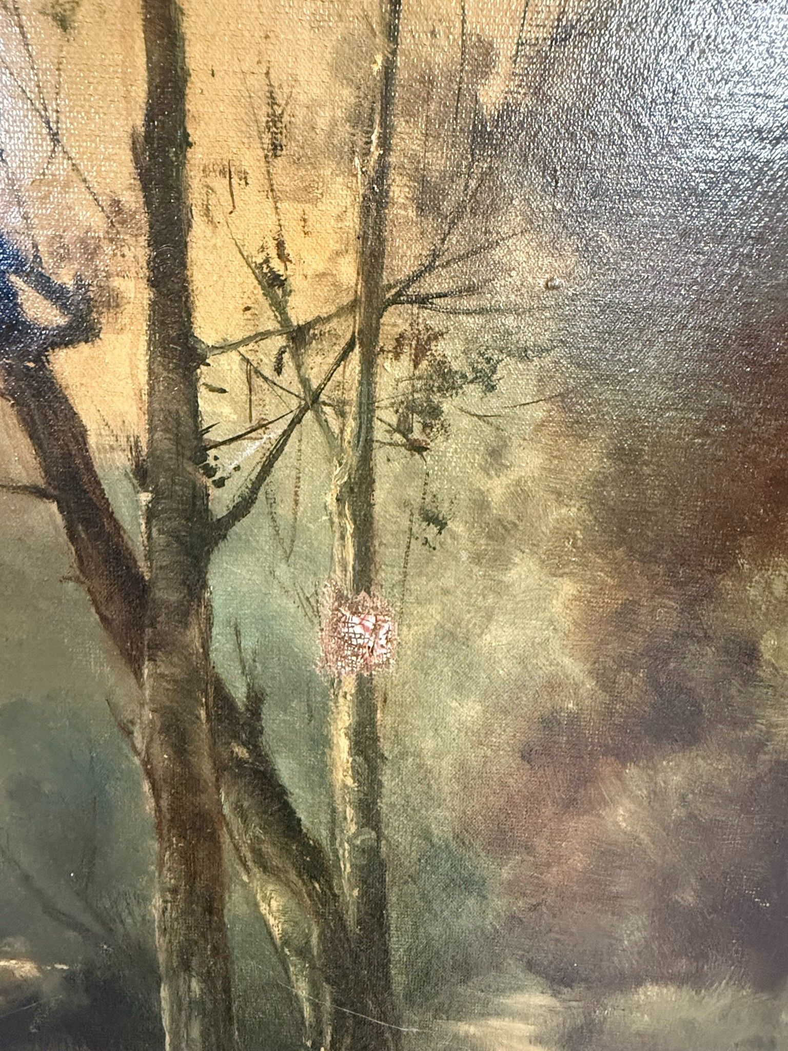 IZIER (XXXth) , Oil on canvas, lakescape, signed lower left, 85 x 36 cm, Accident (glass missing)