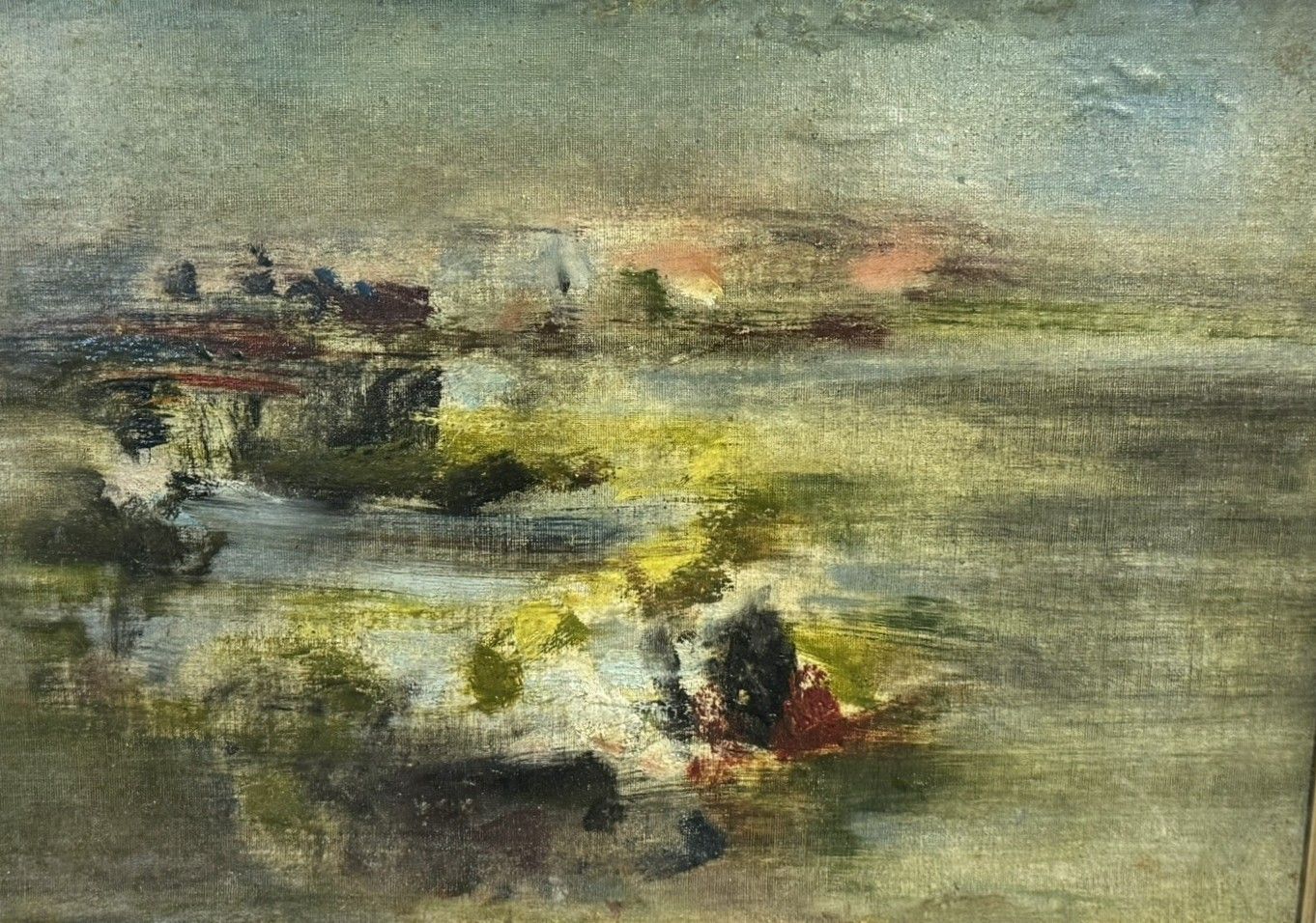 XXth CENTURY SCHOOL, "Abstract Landscape" Oil on board, 46X33 cm