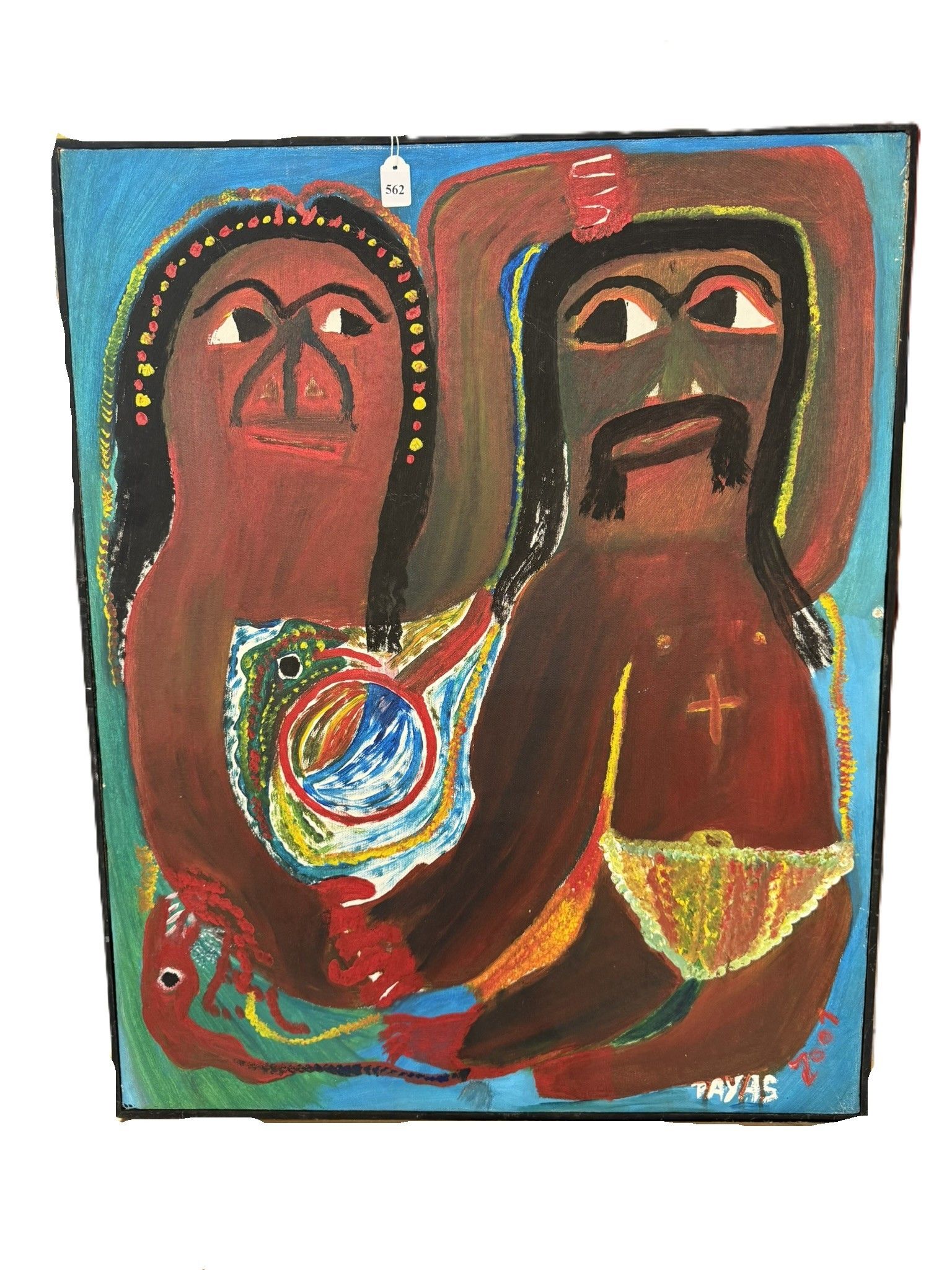 Pierre-Sylvain Augustin dit PAYAS (1941) HAITI "Le Couple" Acrylic on canvas. SBD. Dated 2001. Size: 52,5 x 65 cm.