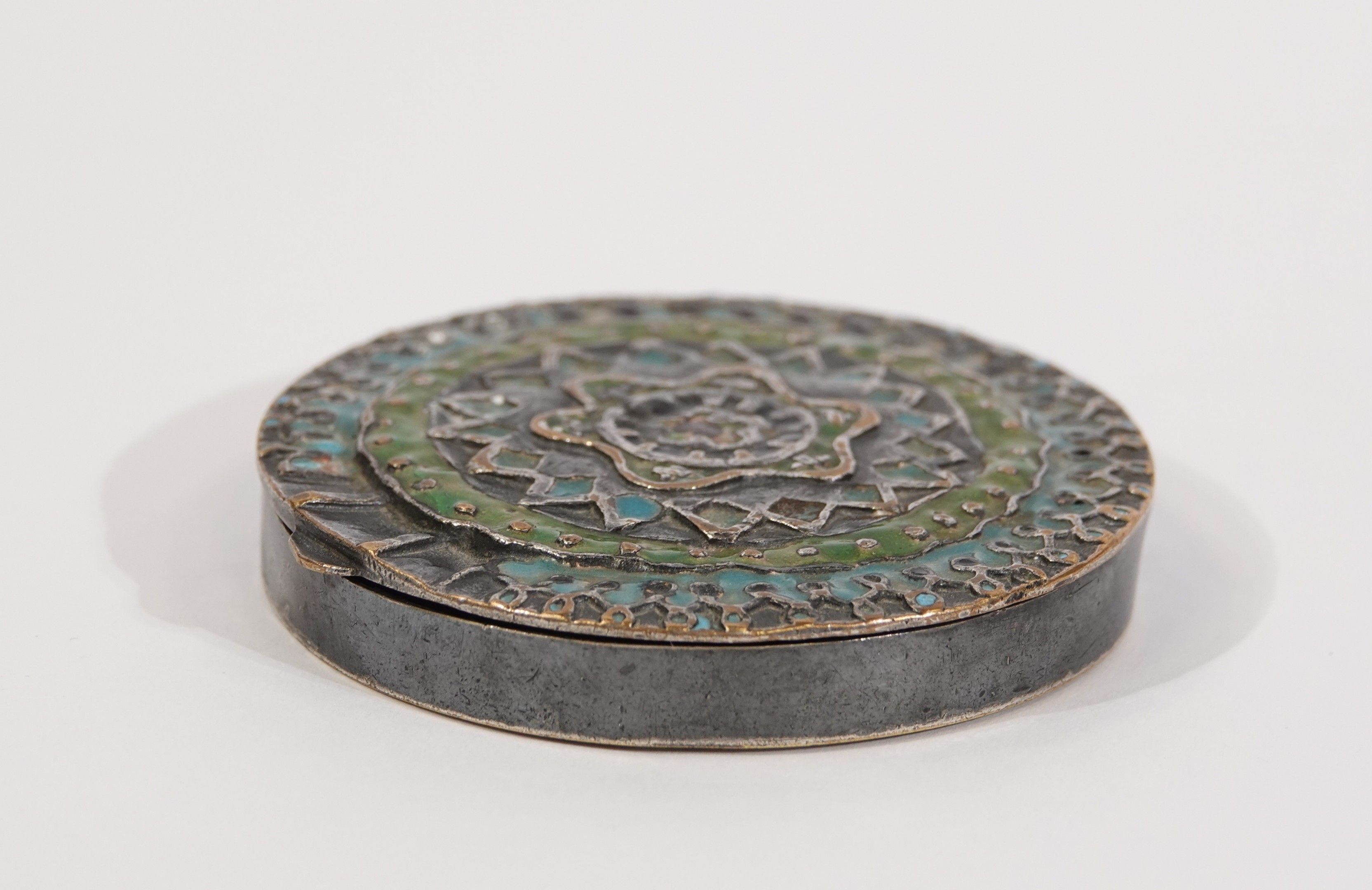 Premium Line VAUTRIN (1913-1997) Circular silver-plated enamelled po…