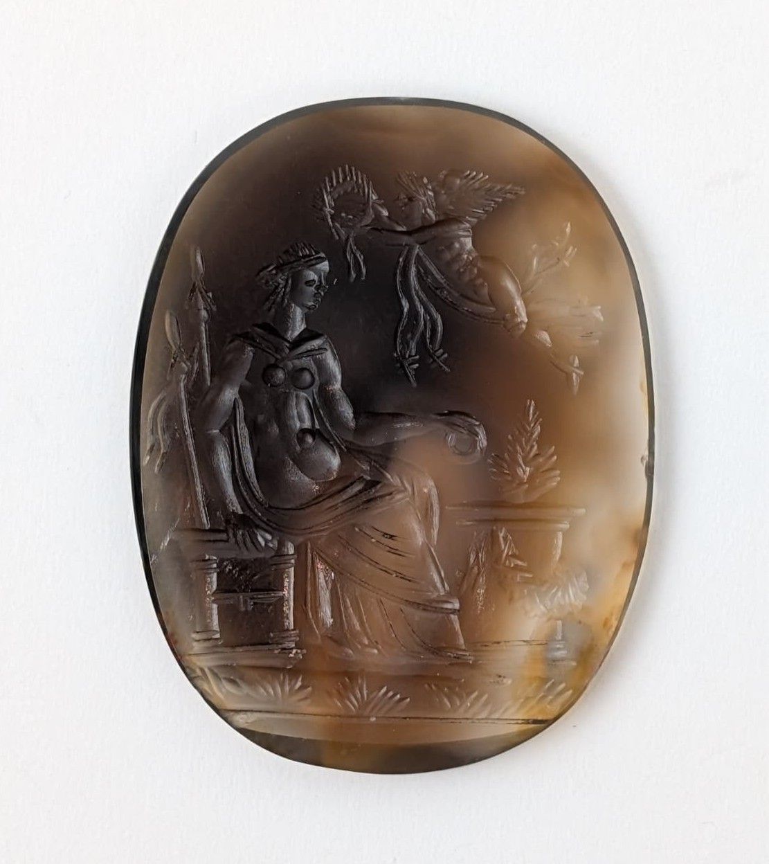 Premium Large intaglio depicting a female figure on a throne crowned…