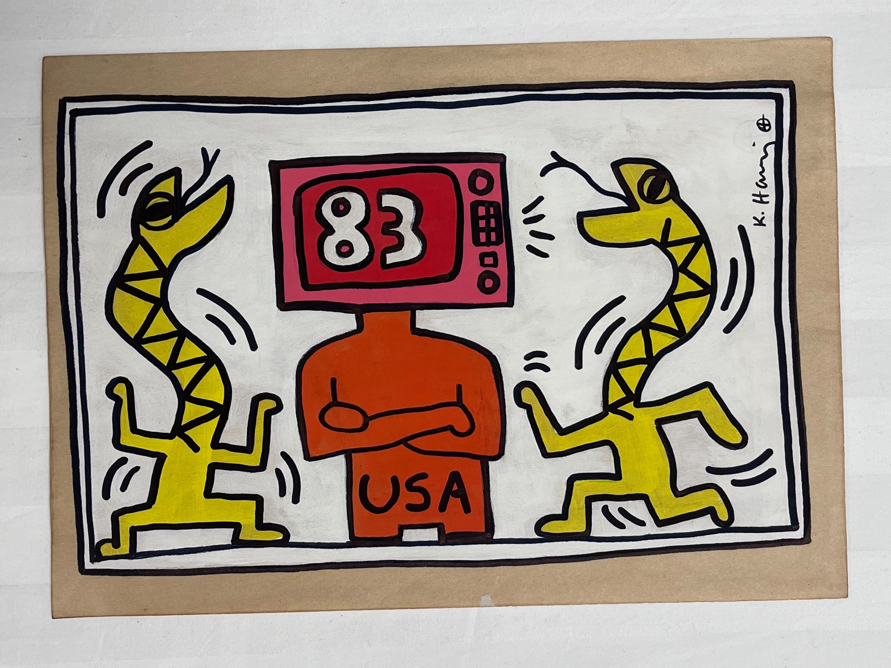 Premium Keith HARING : "Untitled" (USA 83) (27x17,5cm) mixed techniq…