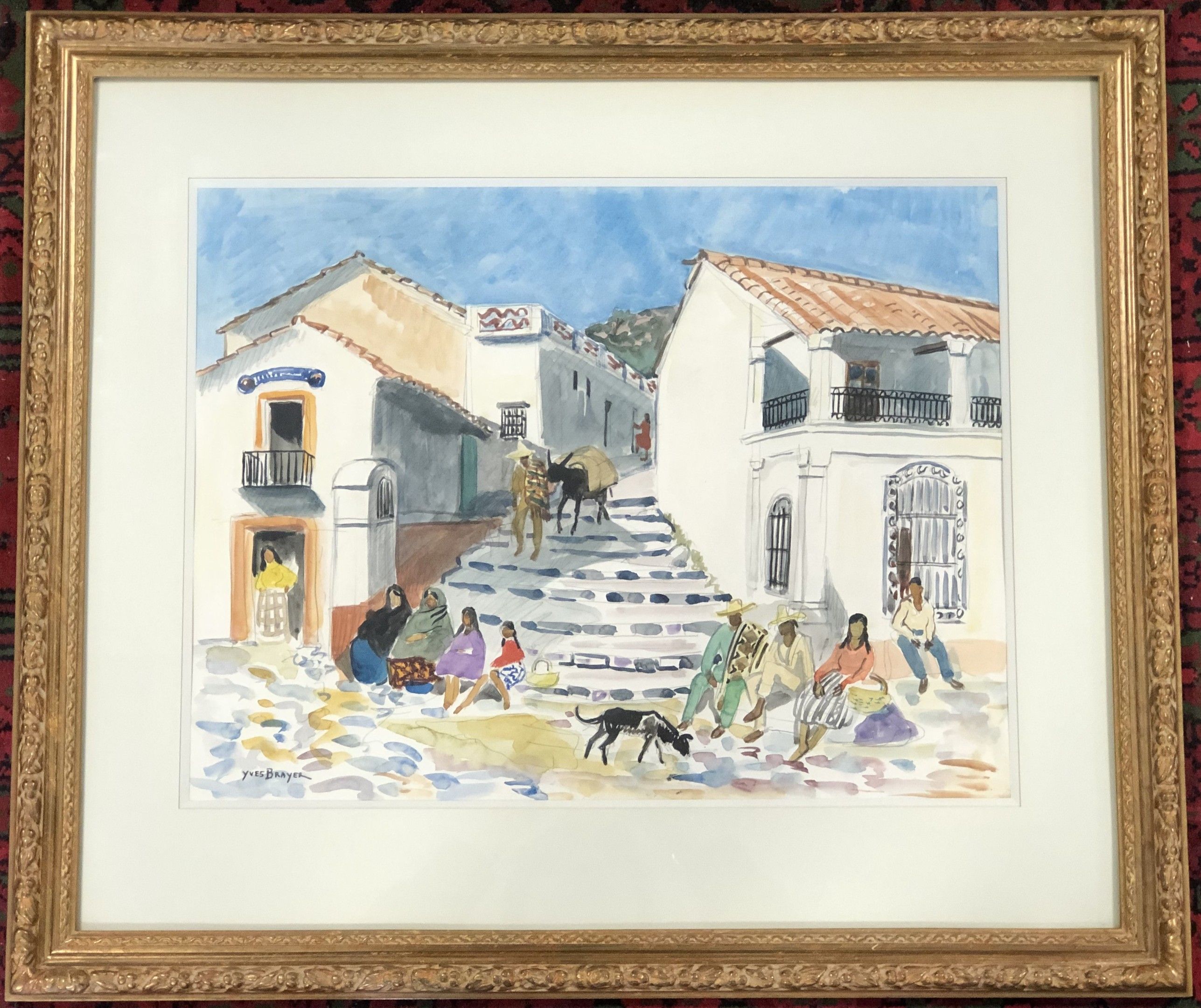 Yves BRAYER (1907-1990): "L'escalier à Taxco, Mexique" Watercolour (40x53) framed under SBD glass, titled on the back