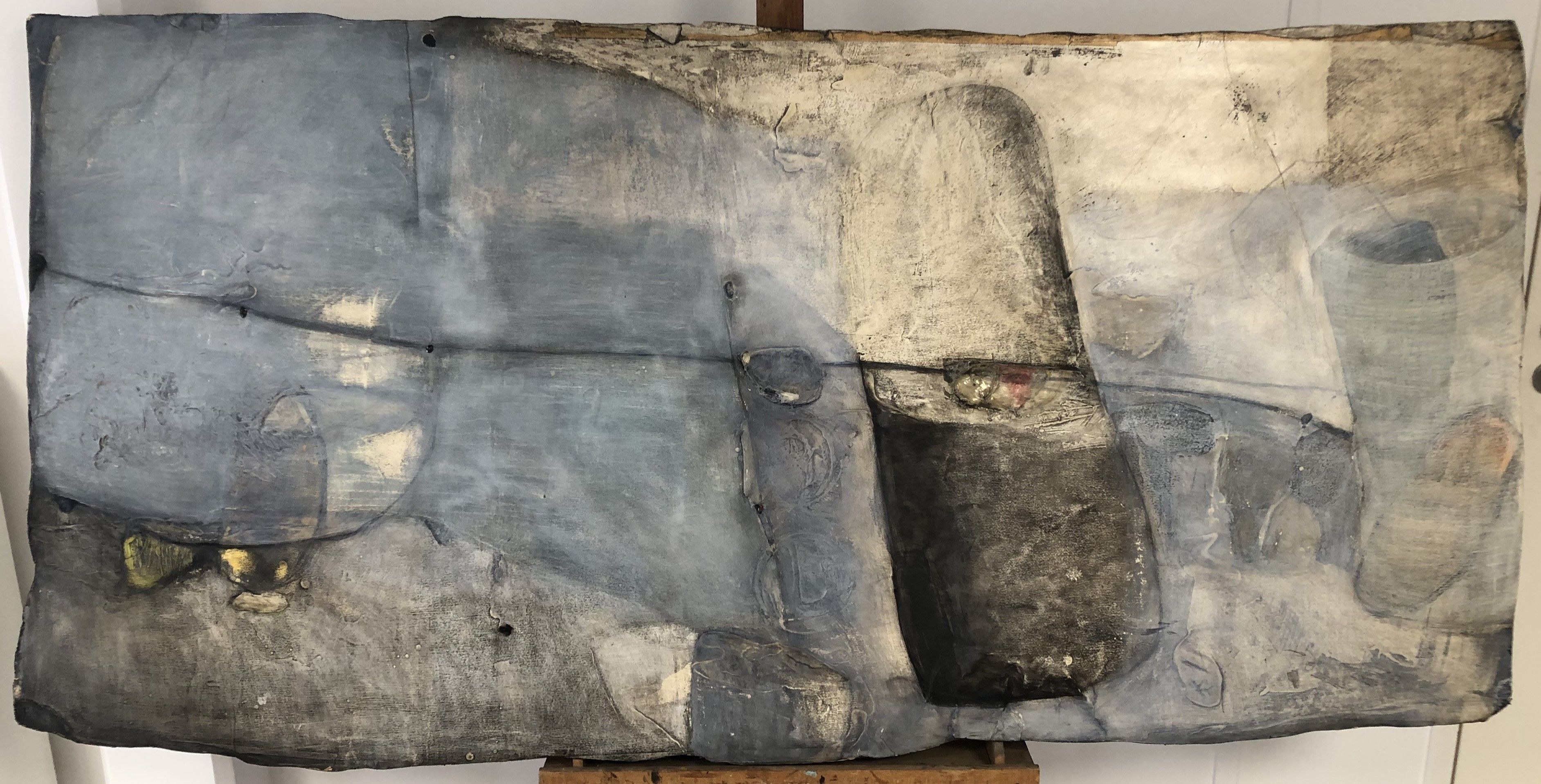 Marie-Christine JALADON (1956)(attributed to) modern work mixed technique "Abstraction" unsigned on flexible panel (190x90cm)