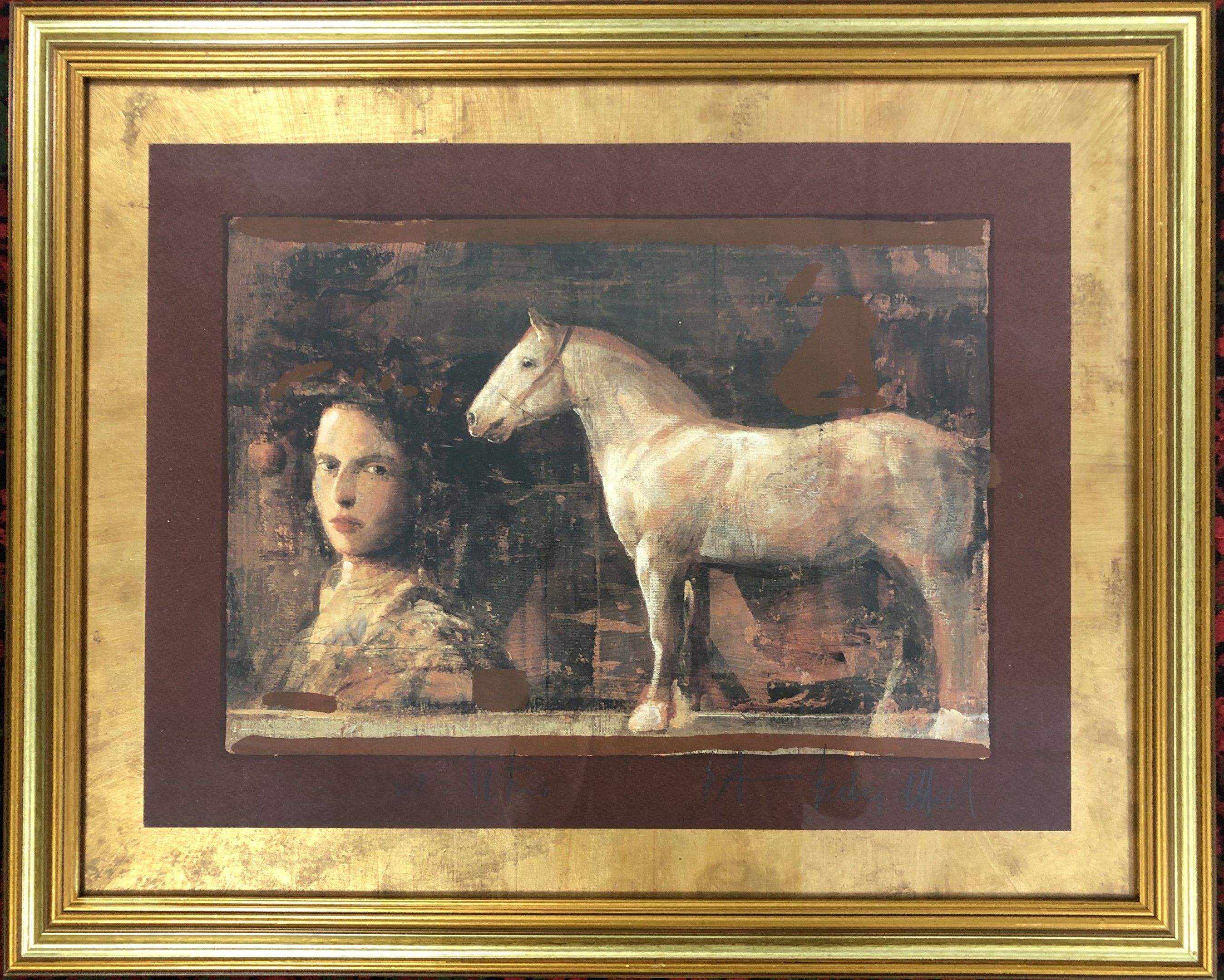Mersad BERBER (1940-2012) "Horse and woman in bust" mixed te…