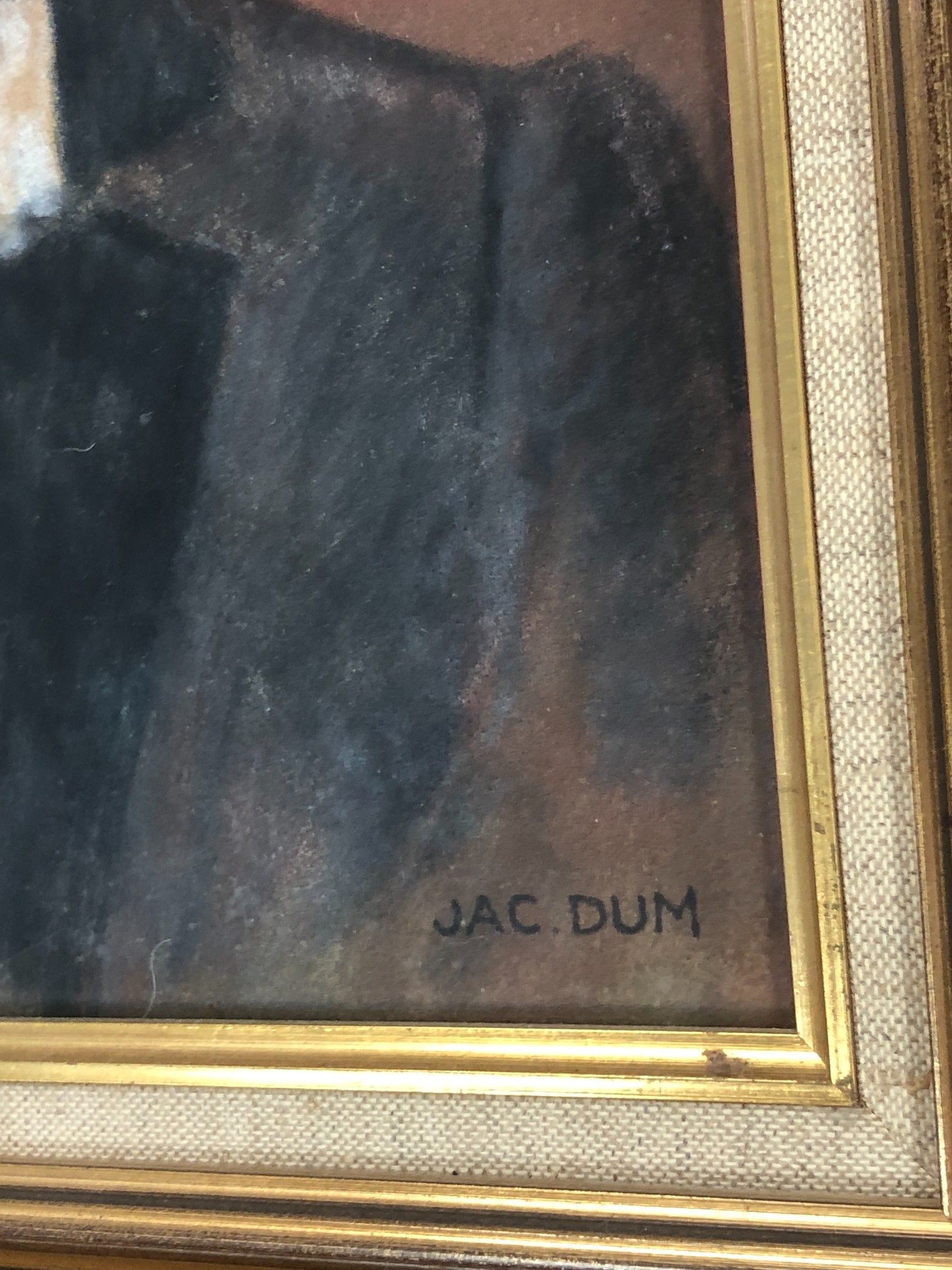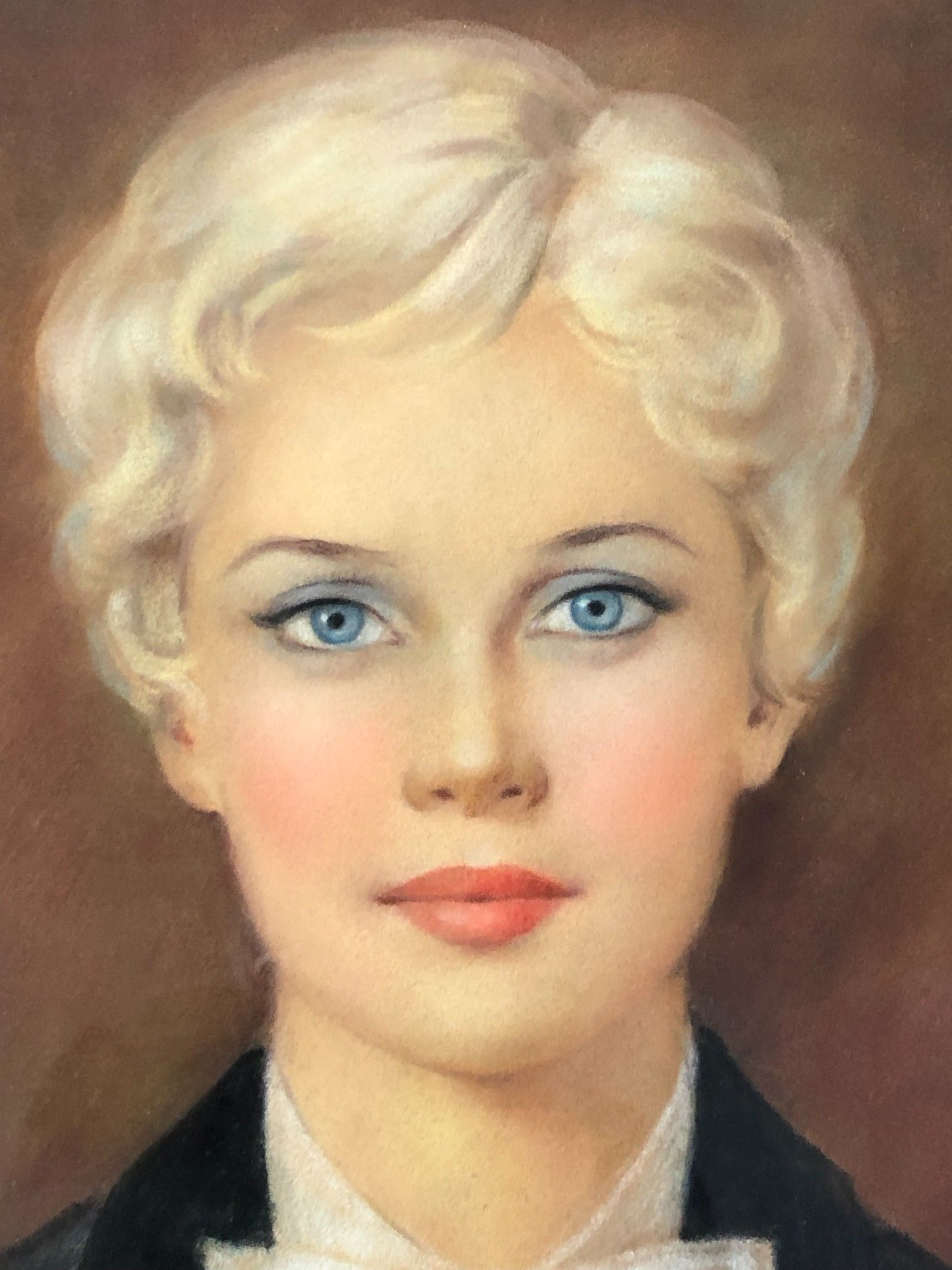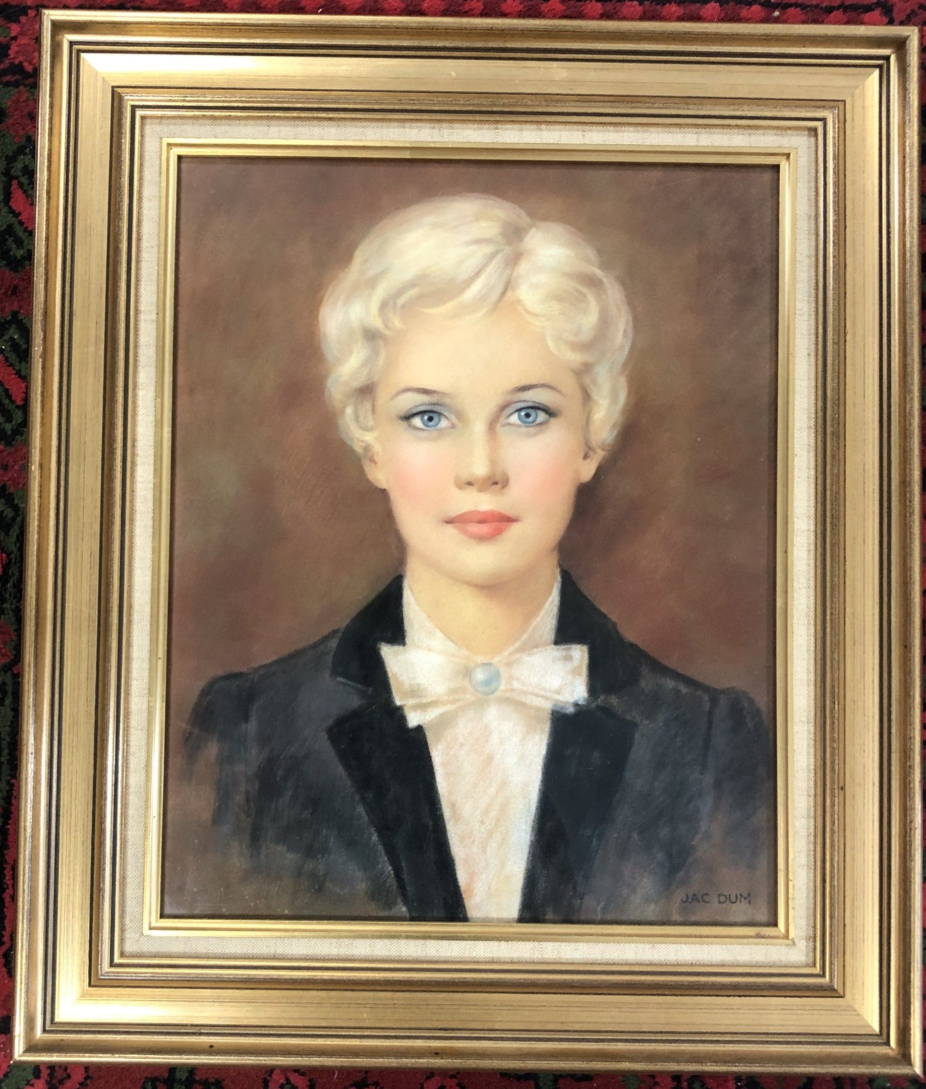 JAC DUM "Bust of a blonde rider with blue eyes" pastel under glass framed SBD (44x36cm)