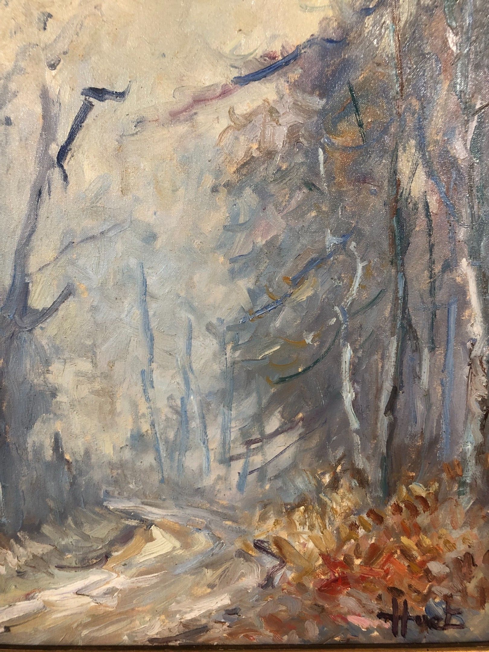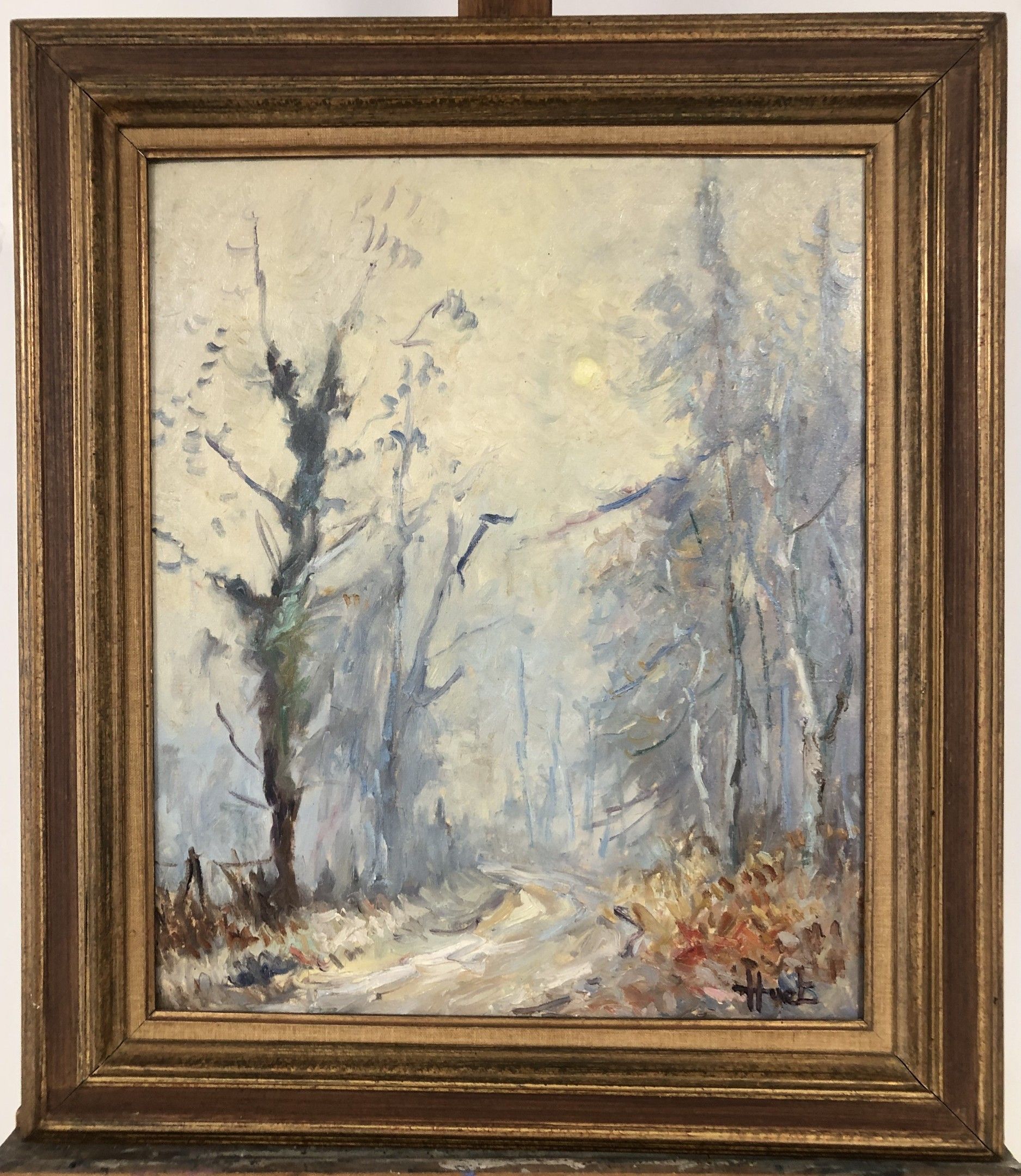 HUET "Chemin dans les bois" HST signed (56x46cm) titled on the back "Sur la route de Gouy".