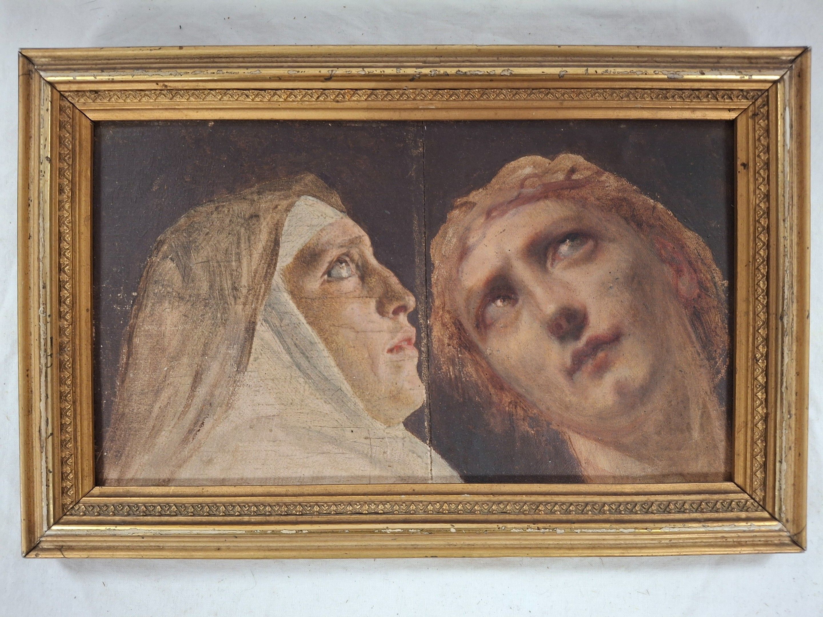 French school middle XIXth century after an Old Master : "Portraits of Marguerite Marie and Christ" HSP (12,5x22cm)