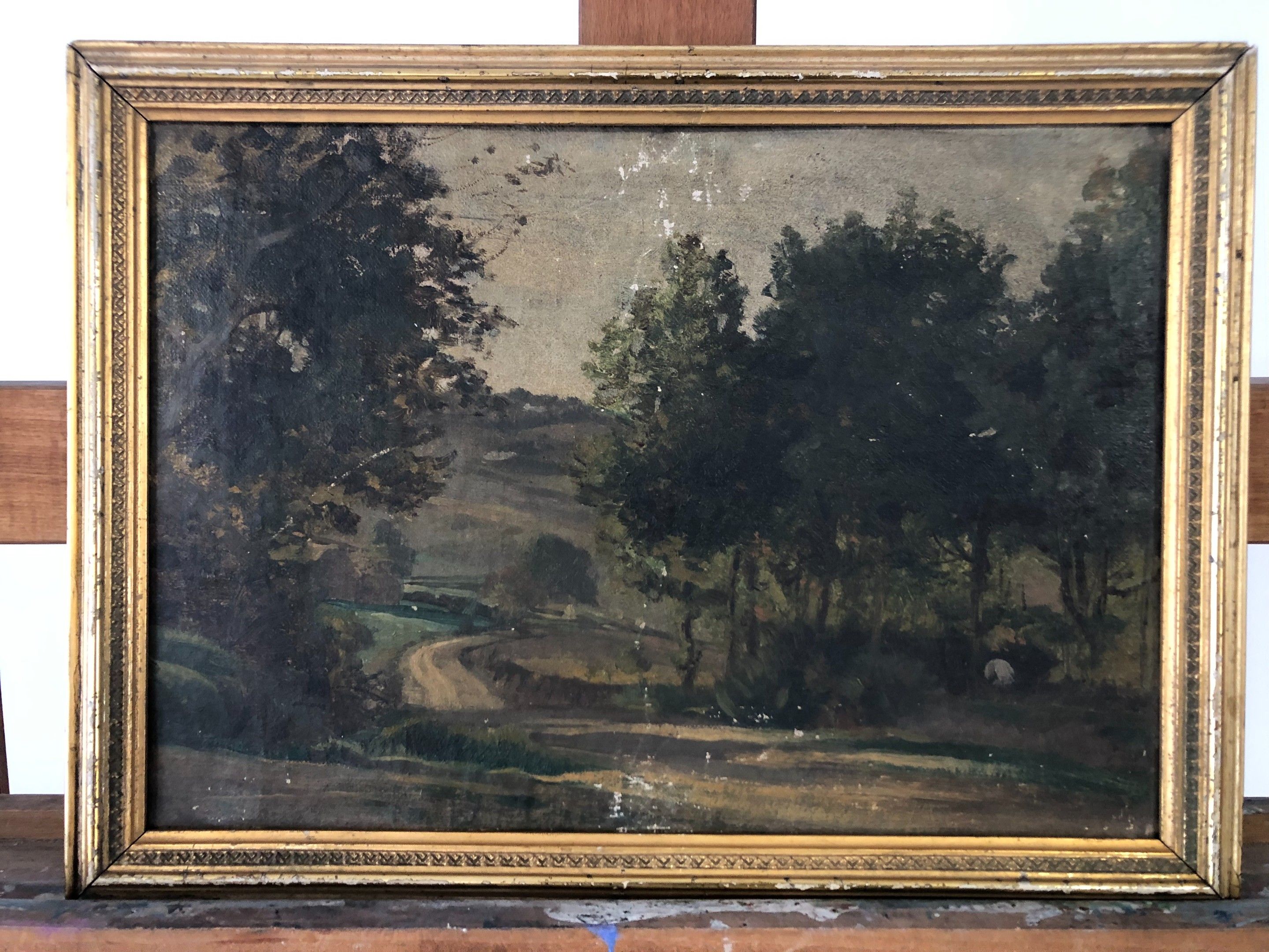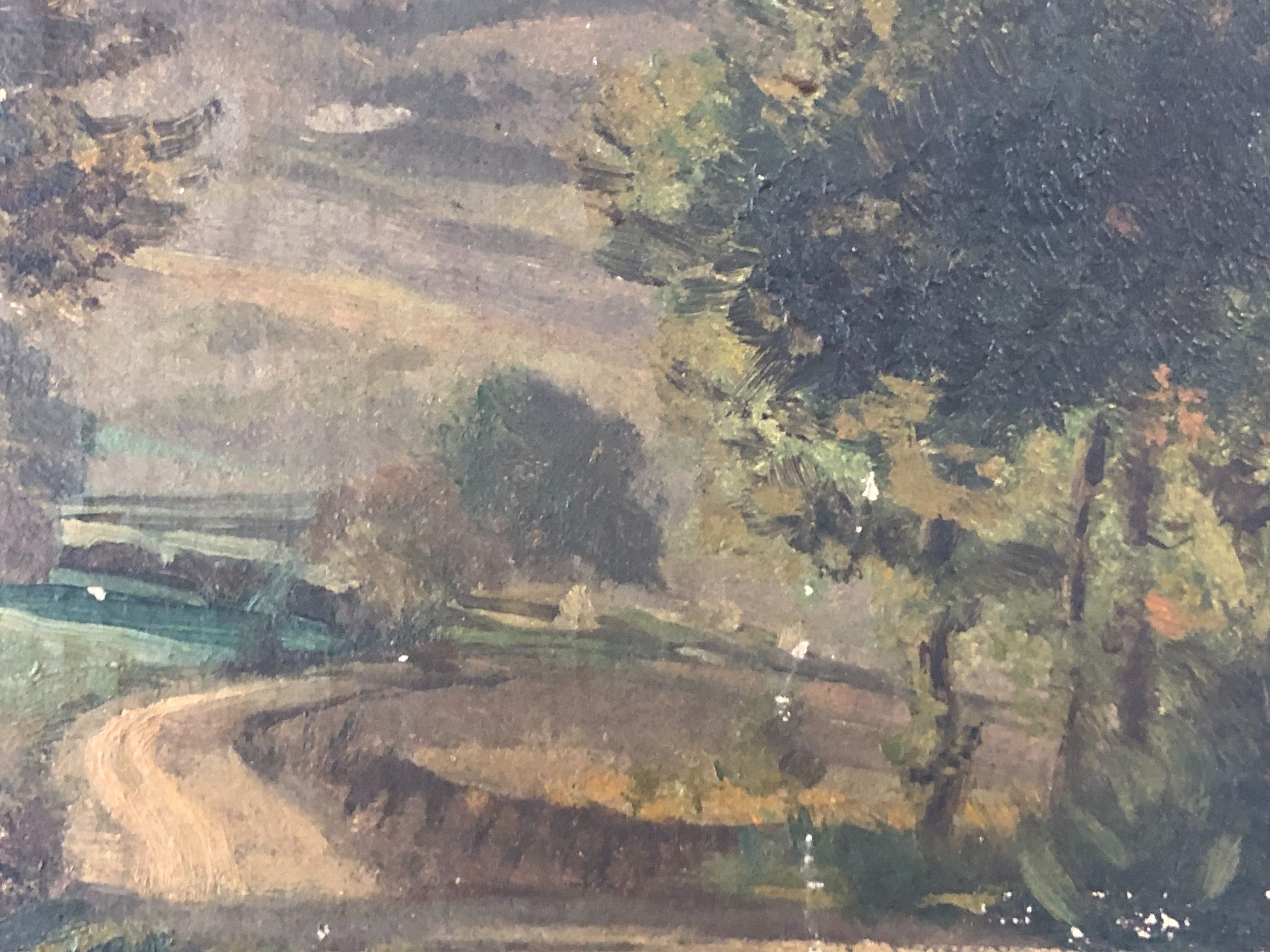 Late 19th century French school in the Barbizon style: "Landscape in the forest" HSC, roadside (22.5x32cm) (small pigment accidents)