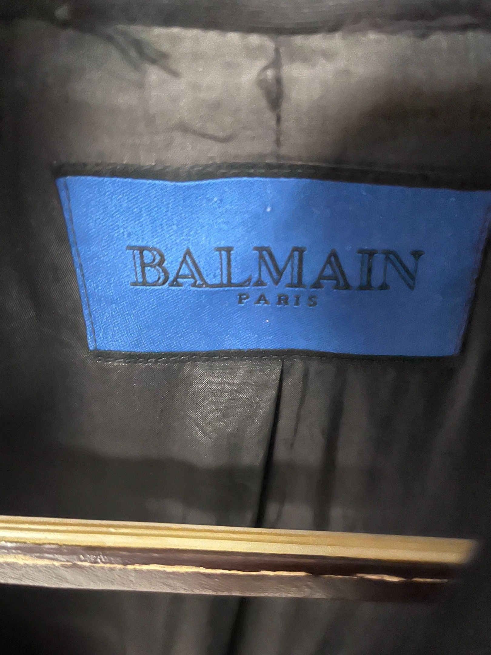 BALMAIN, long black cotton jacket with white stripes S 40 FR