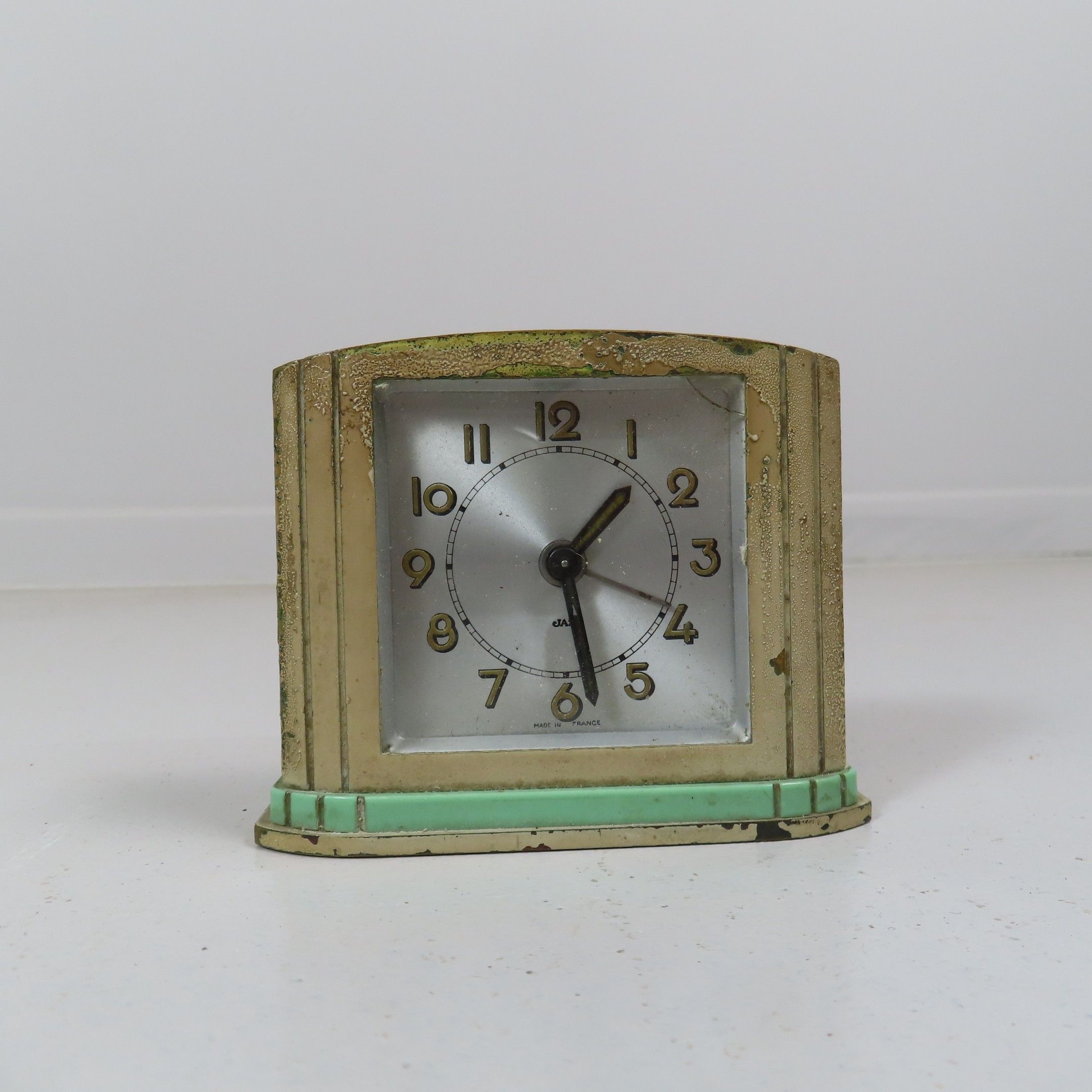 Lot comprising three painted wood and papier-mache boxes; a JAZ clock; a CHRISTOFLE sugar bowl (deformations; lid missing), a dish and two silver-plated napkin rings; a jewellery box and a "granit de Longwy" earthenware box. (wear)