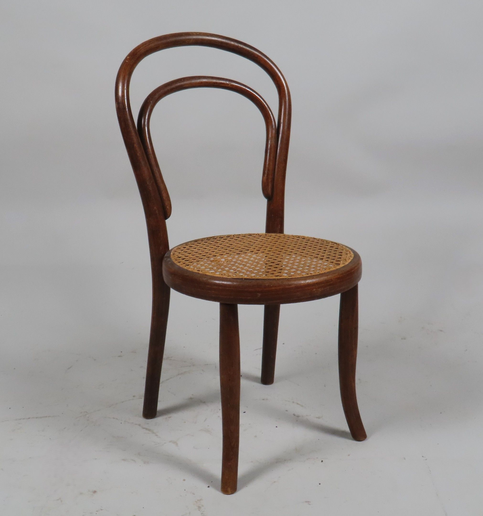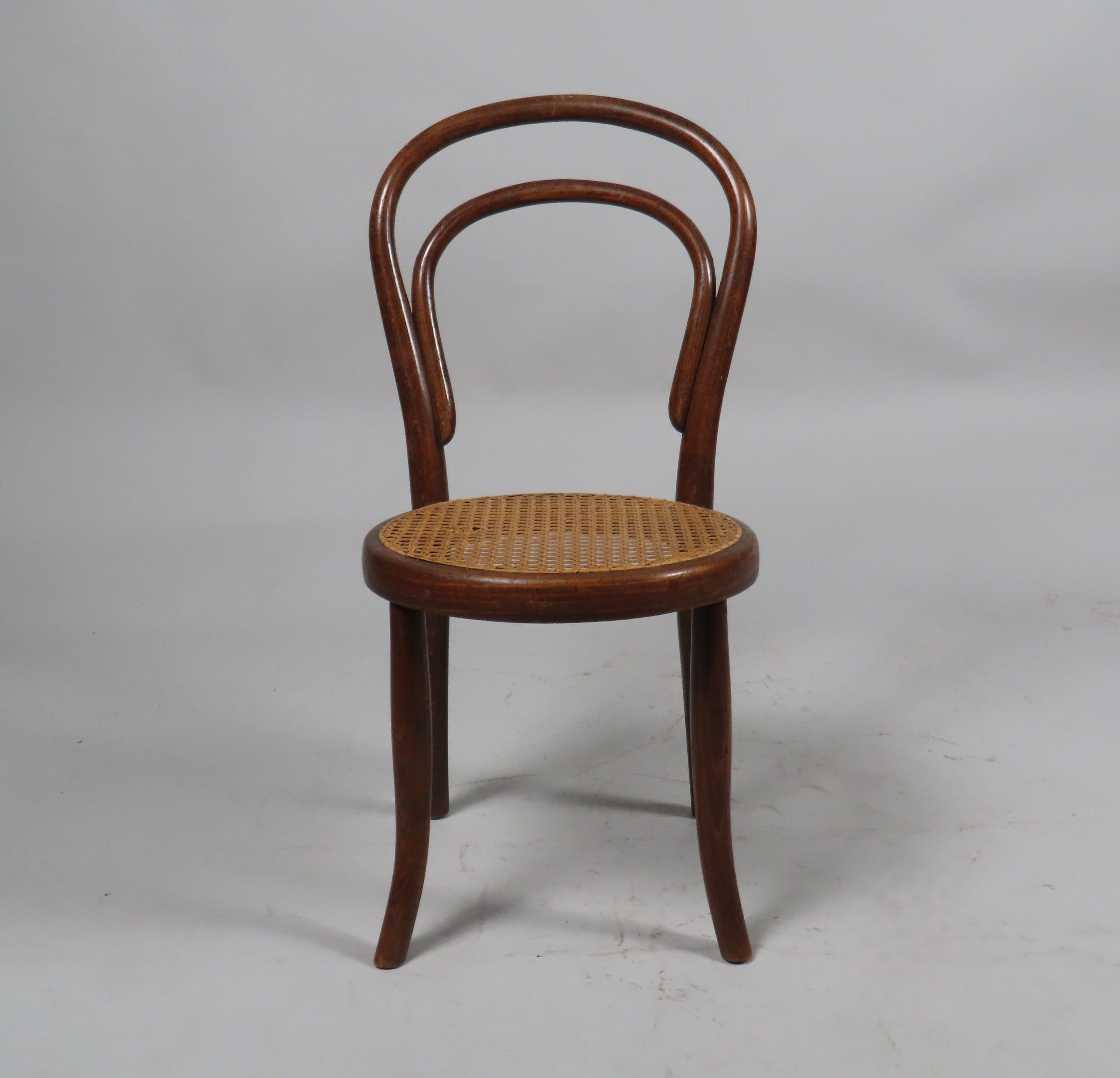 THONET. Children's chair in bentwood and cane seat. Label Ungvar under the seat. Circa 1900. H. = 67 cm (a hole in the seat)
