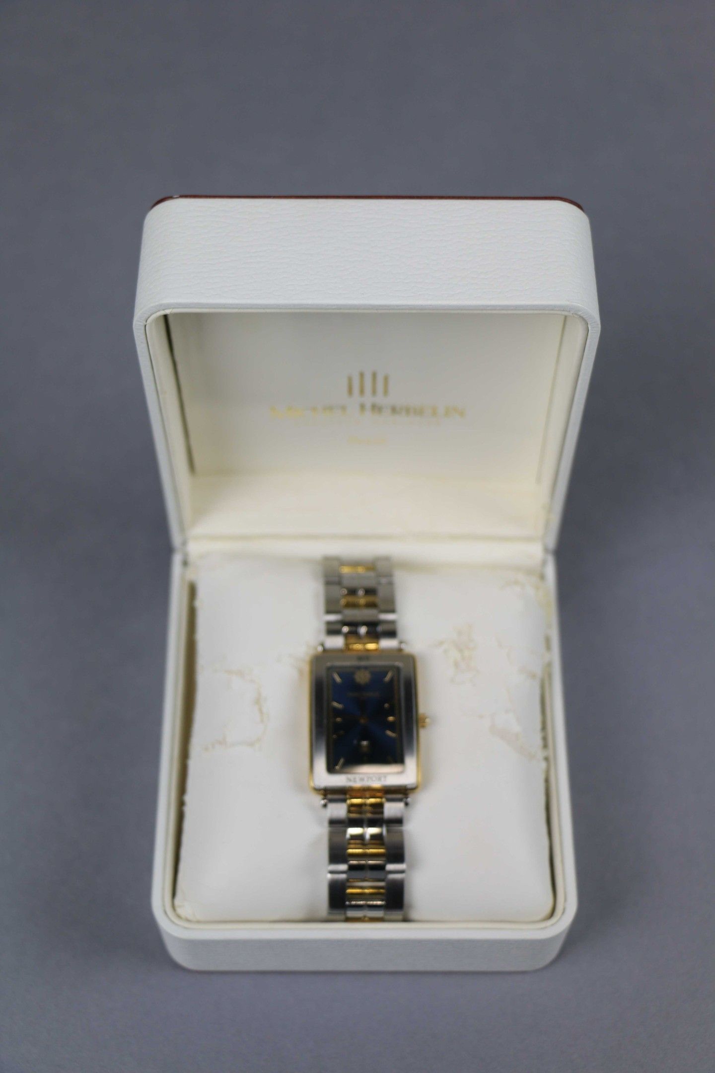 Michel HERBELIN: Newport steel men's watch with rectangular case and articulated bracelet. Quartz movement.
