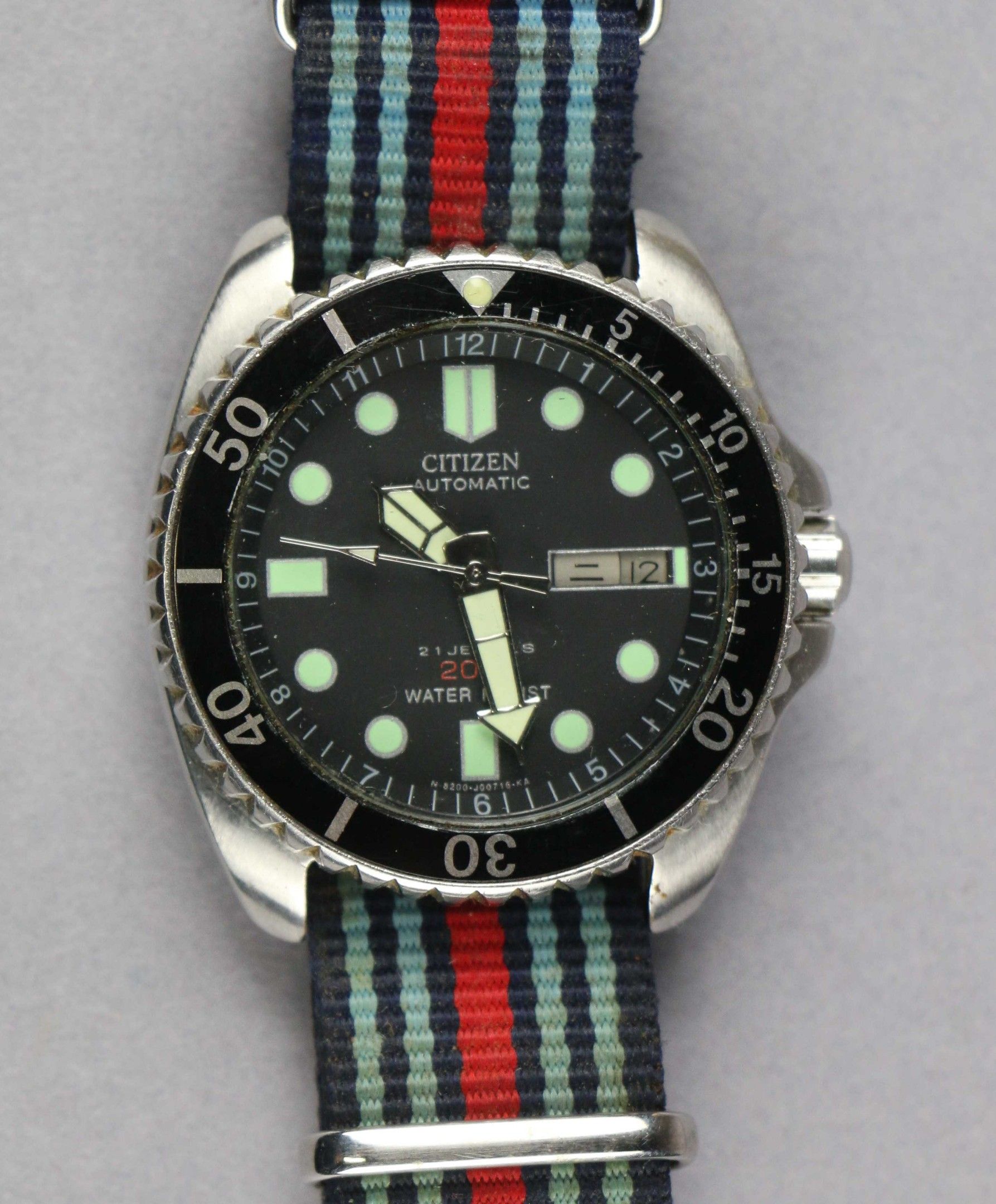 CITIZEN: Men's WATCH diver model GN-4-S 200m water resist with steel case. Apparently functional automatic movement. Case 38 mm. Fabric strap.