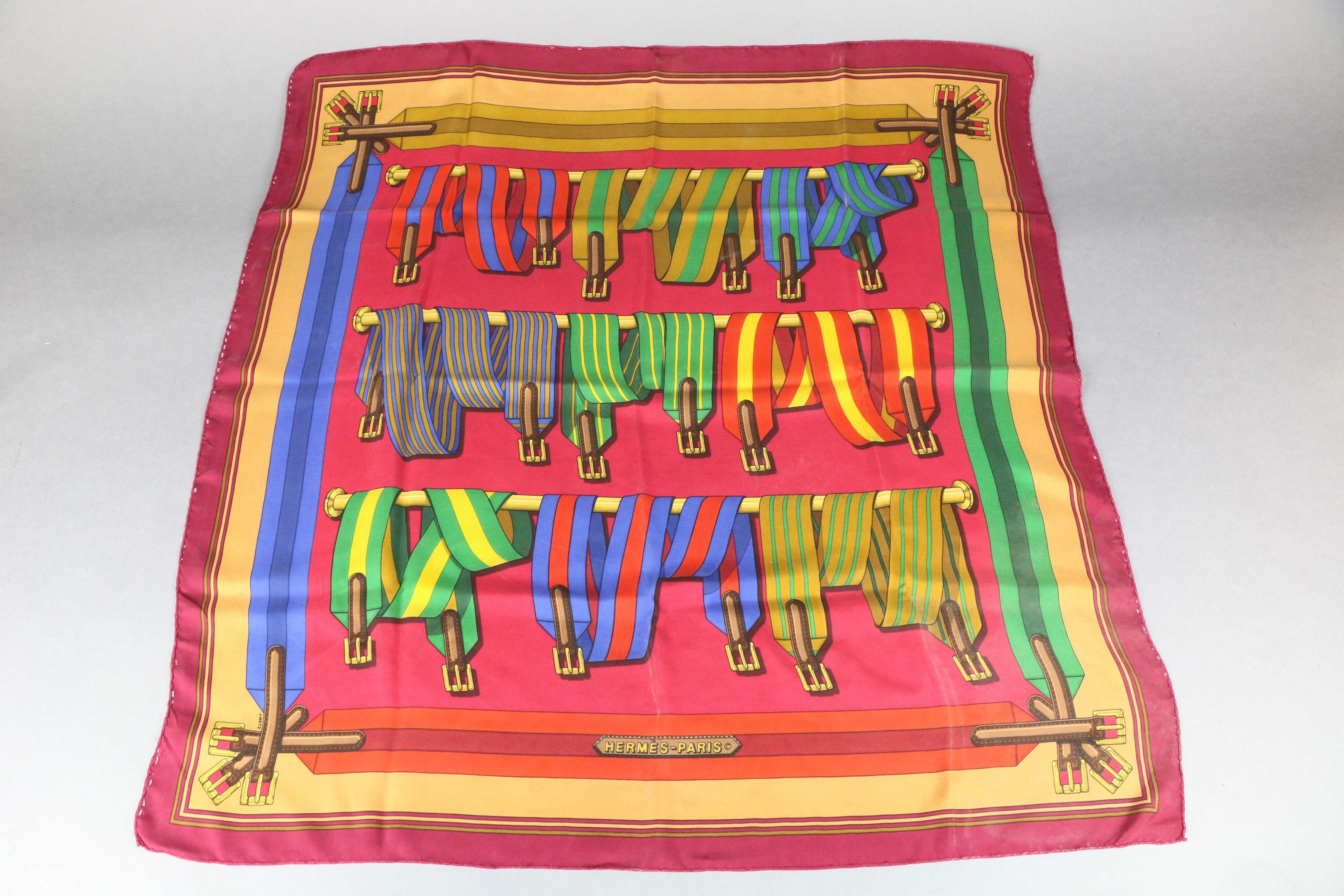 HERMES Paris : Square silk twill FOULARD model "Les Sangles" after Jean Metz.
