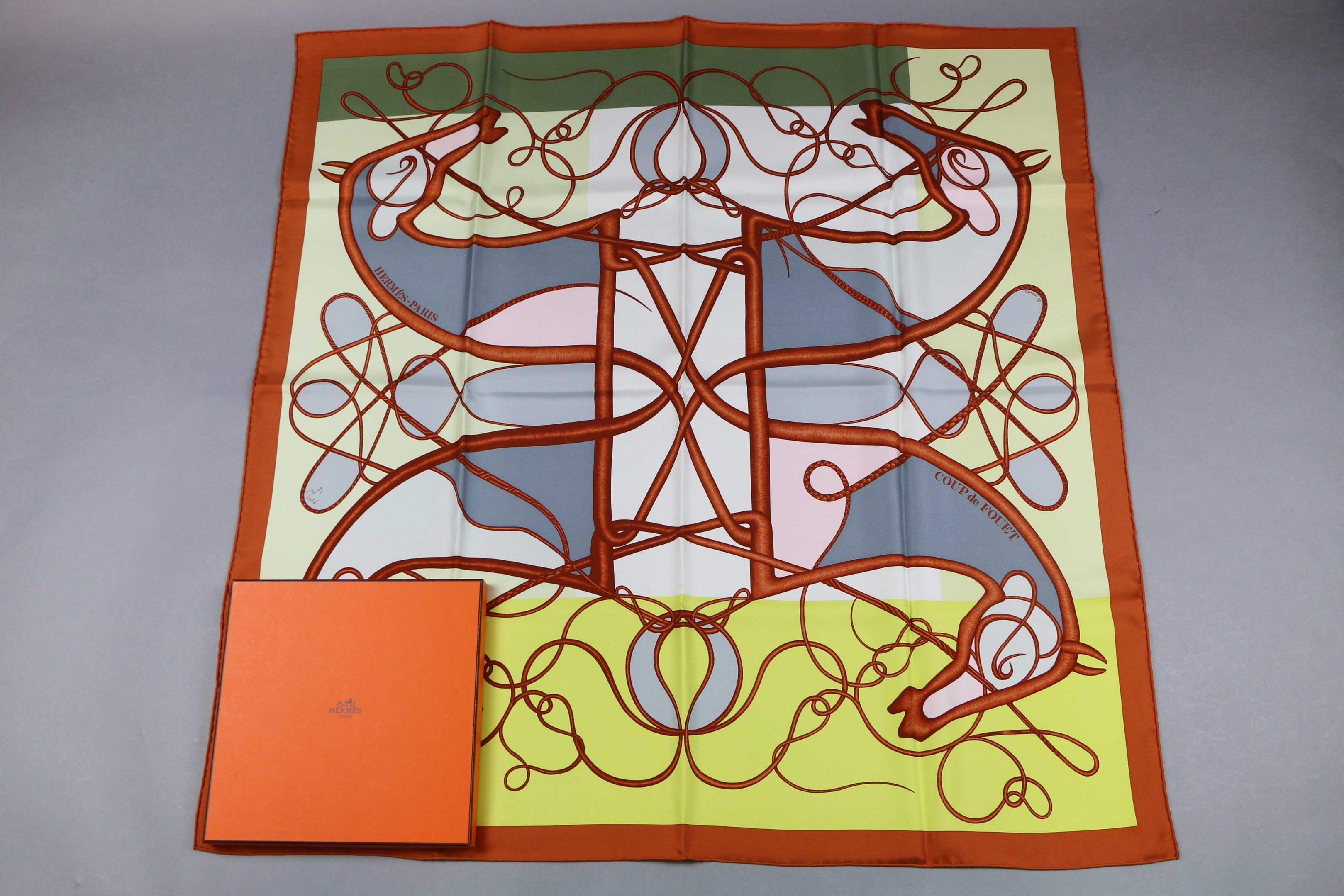 HERMES Paris : Square silk twill FOULARD "Coup de fouet" mod…