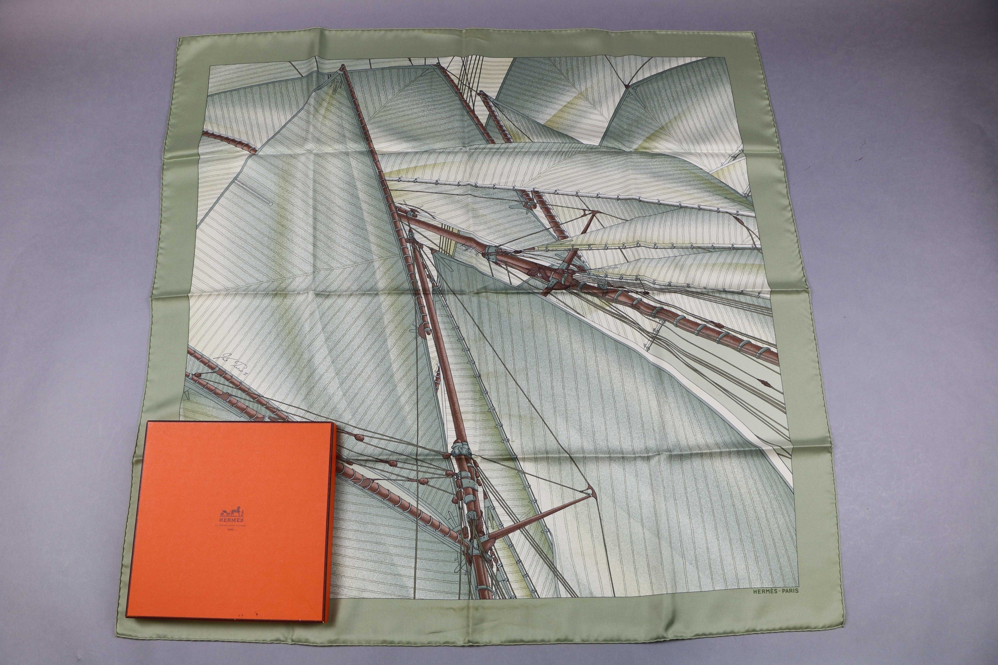 HERMES Paris : Square FOULARD in silk twill model "Vent Port…