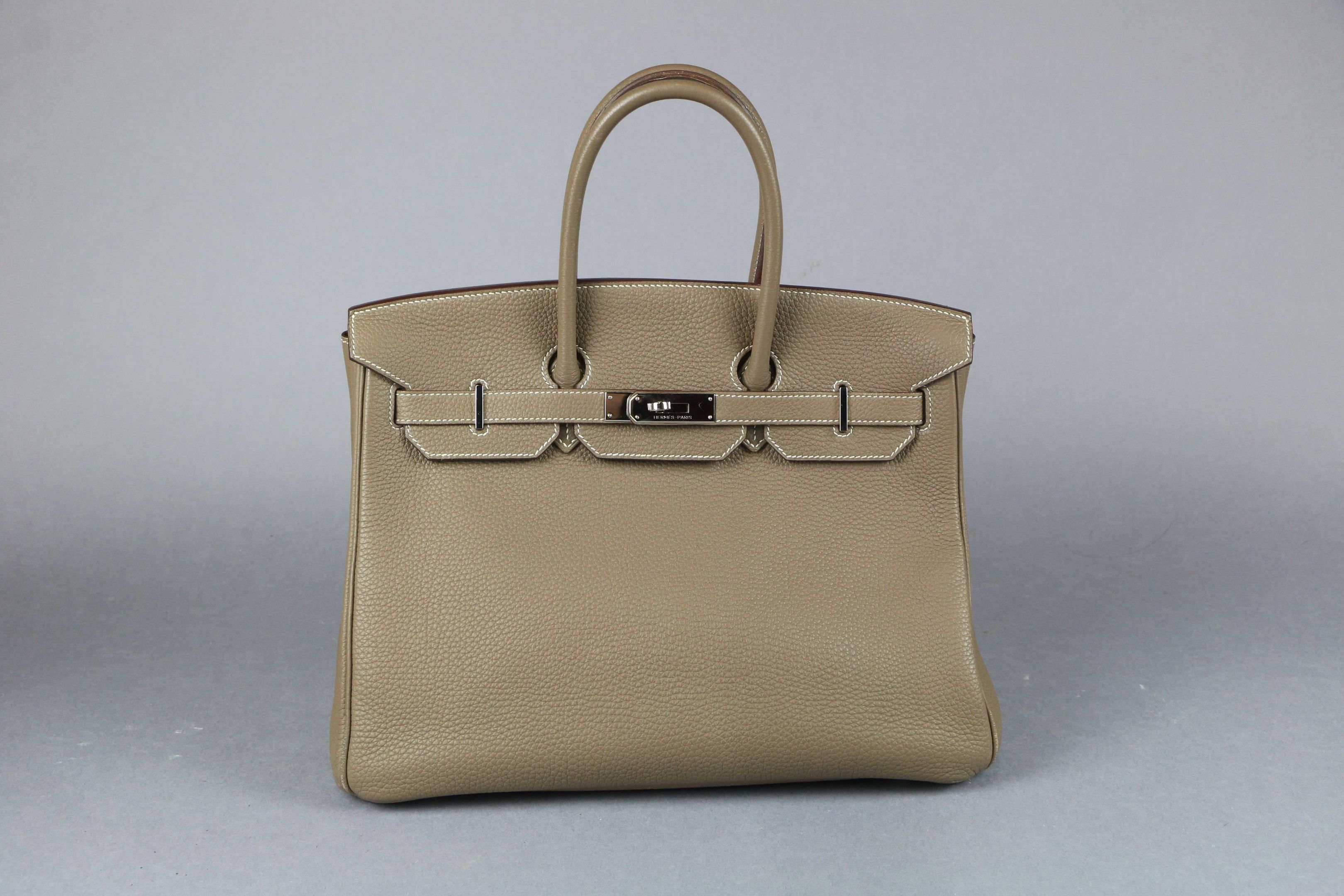 HERMES: "Birkin" model handbag in taupe Clémence taurillon l…
