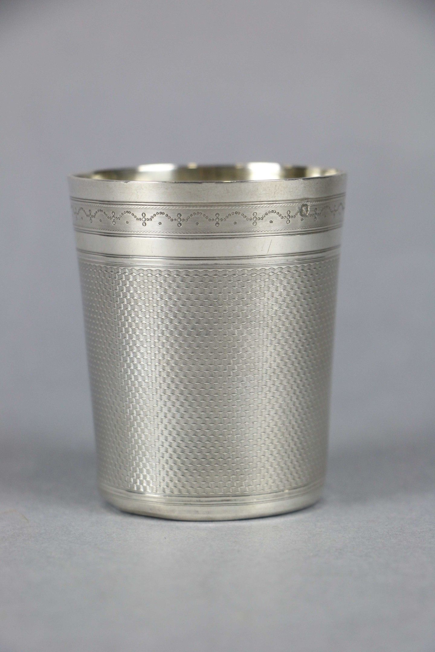 A guilloche silver TIMBALE decorated with a foliate reserve.…
