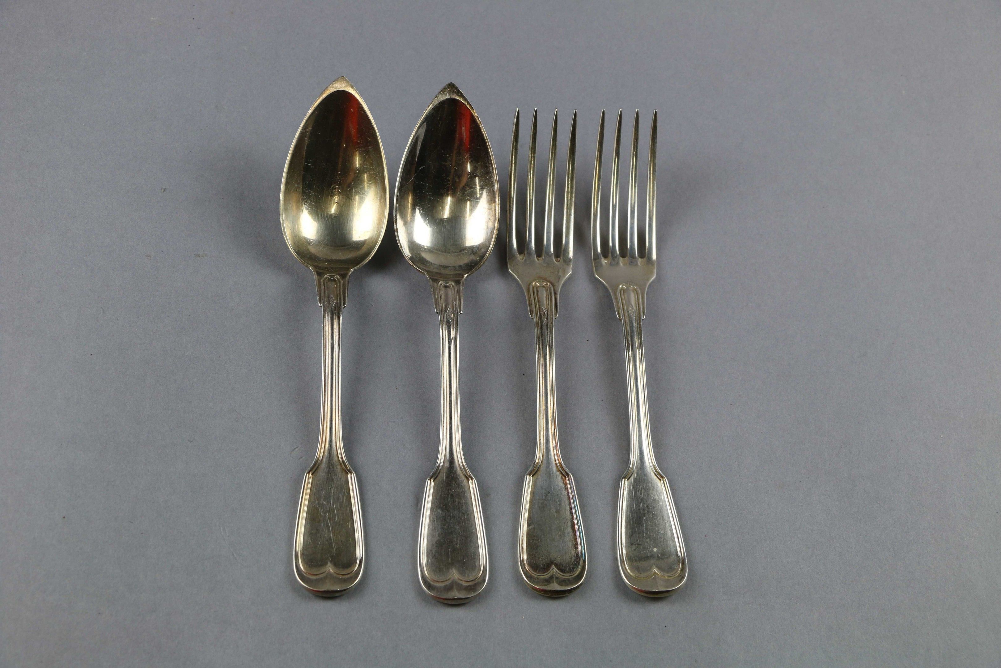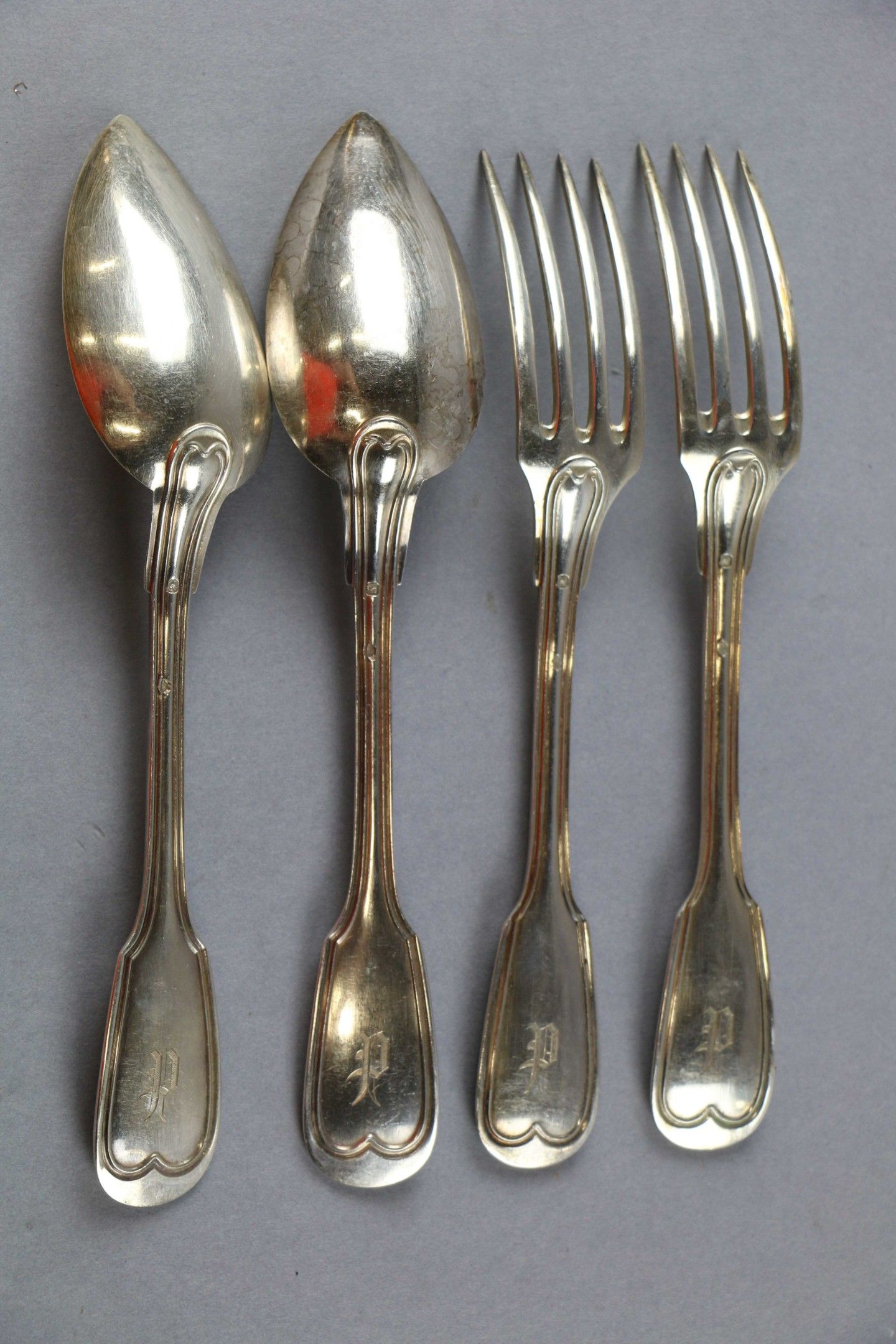 Two large silver COUVERTS, net pattern and back engraved with the letter P. Minerve hallmark.