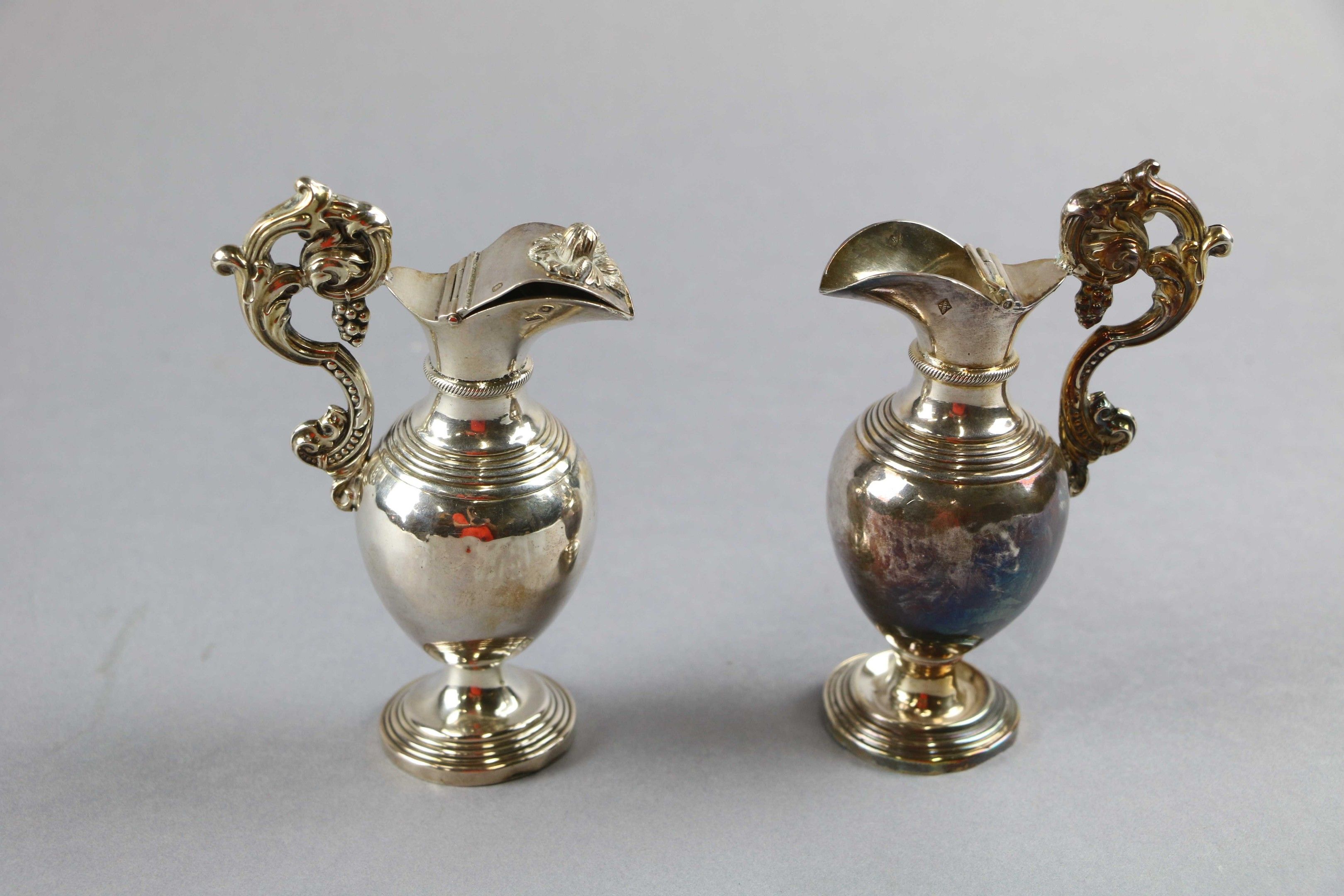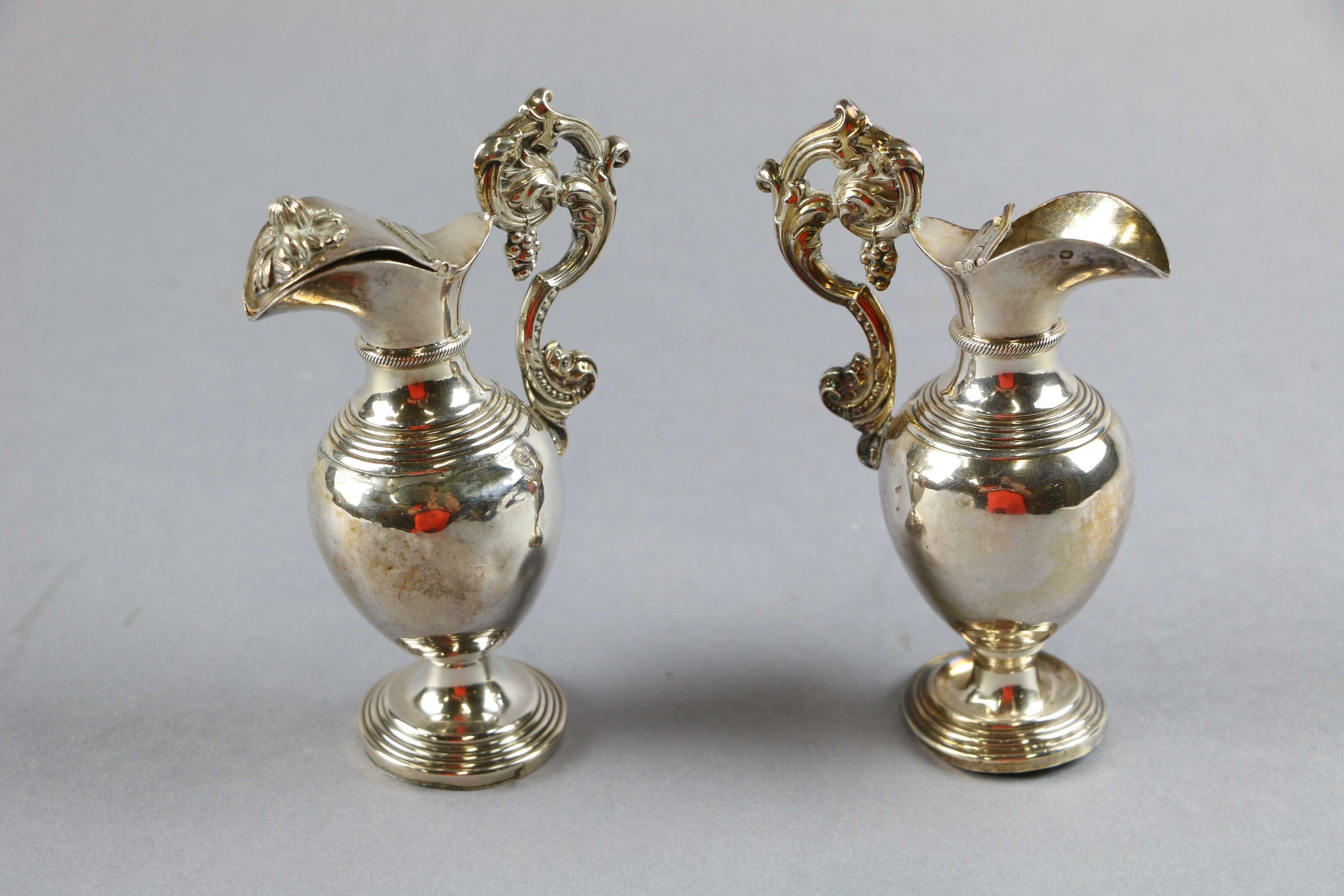 GARNIER silversmith: pair of baluster-shaped silver BURETTES with scrolled handles decorated with pampres. Marked Minerve.