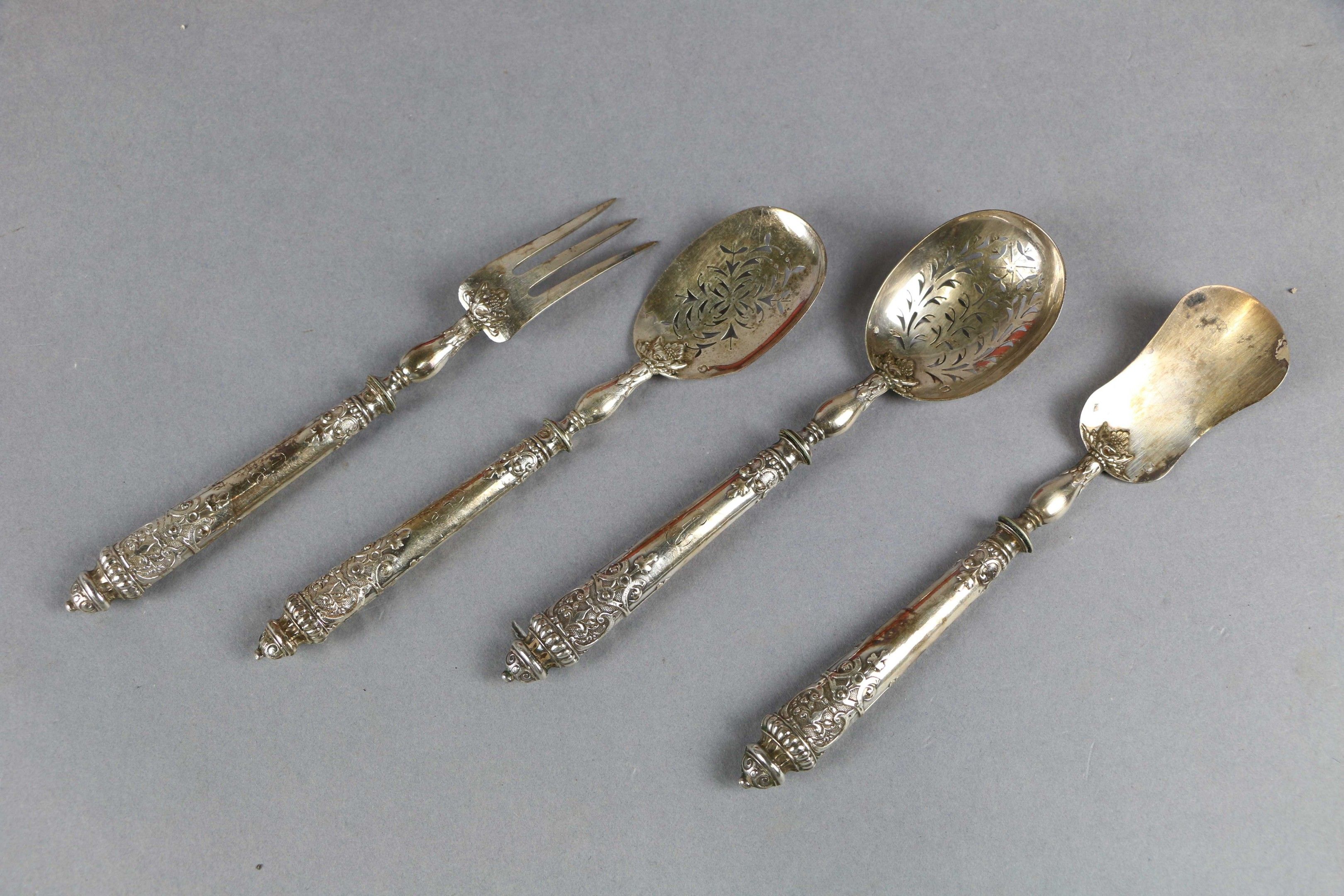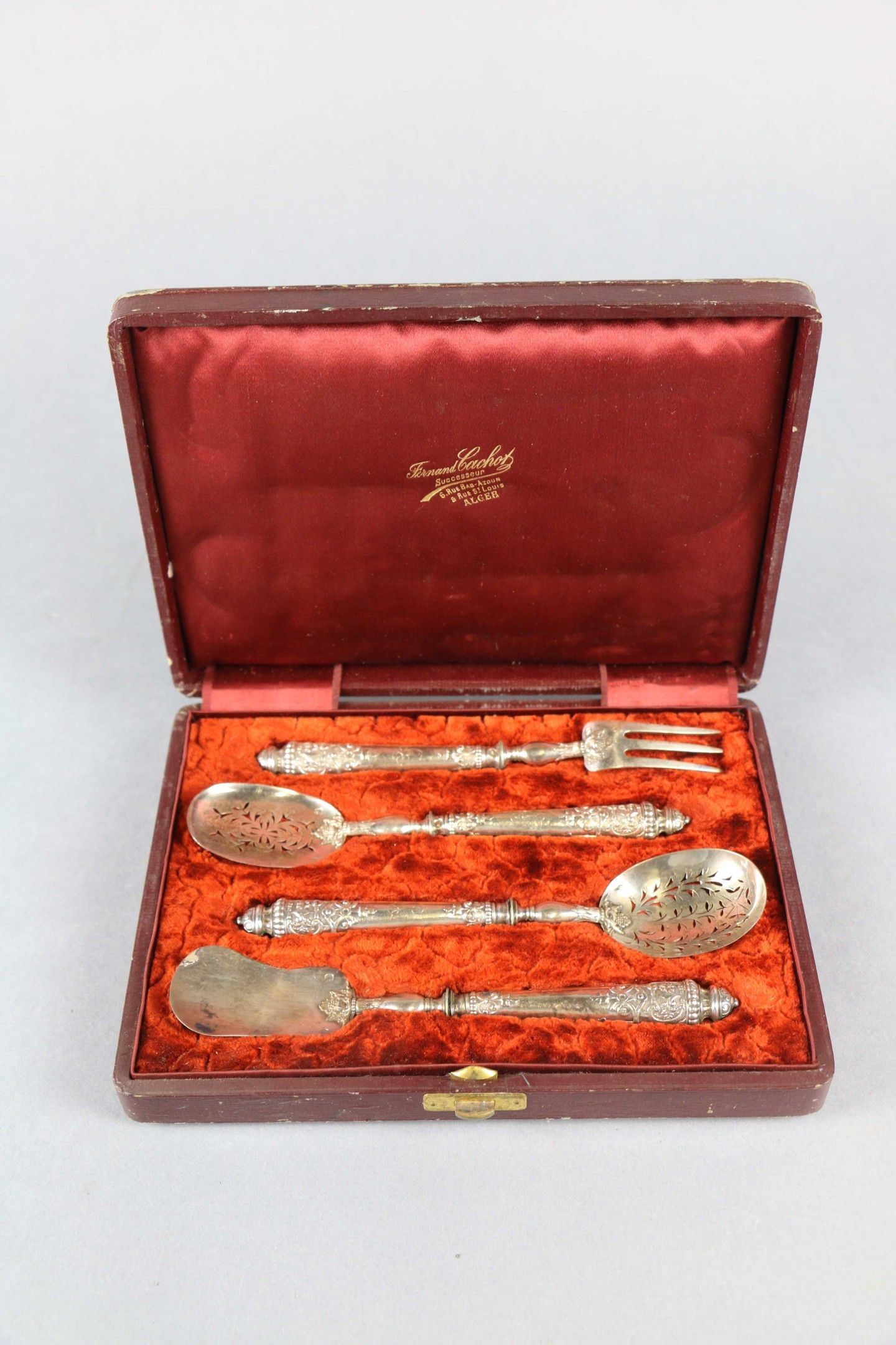 A silver and silver-plated entremets server with a rich decoration of plant motifs and monograms. Minerve hallmark.