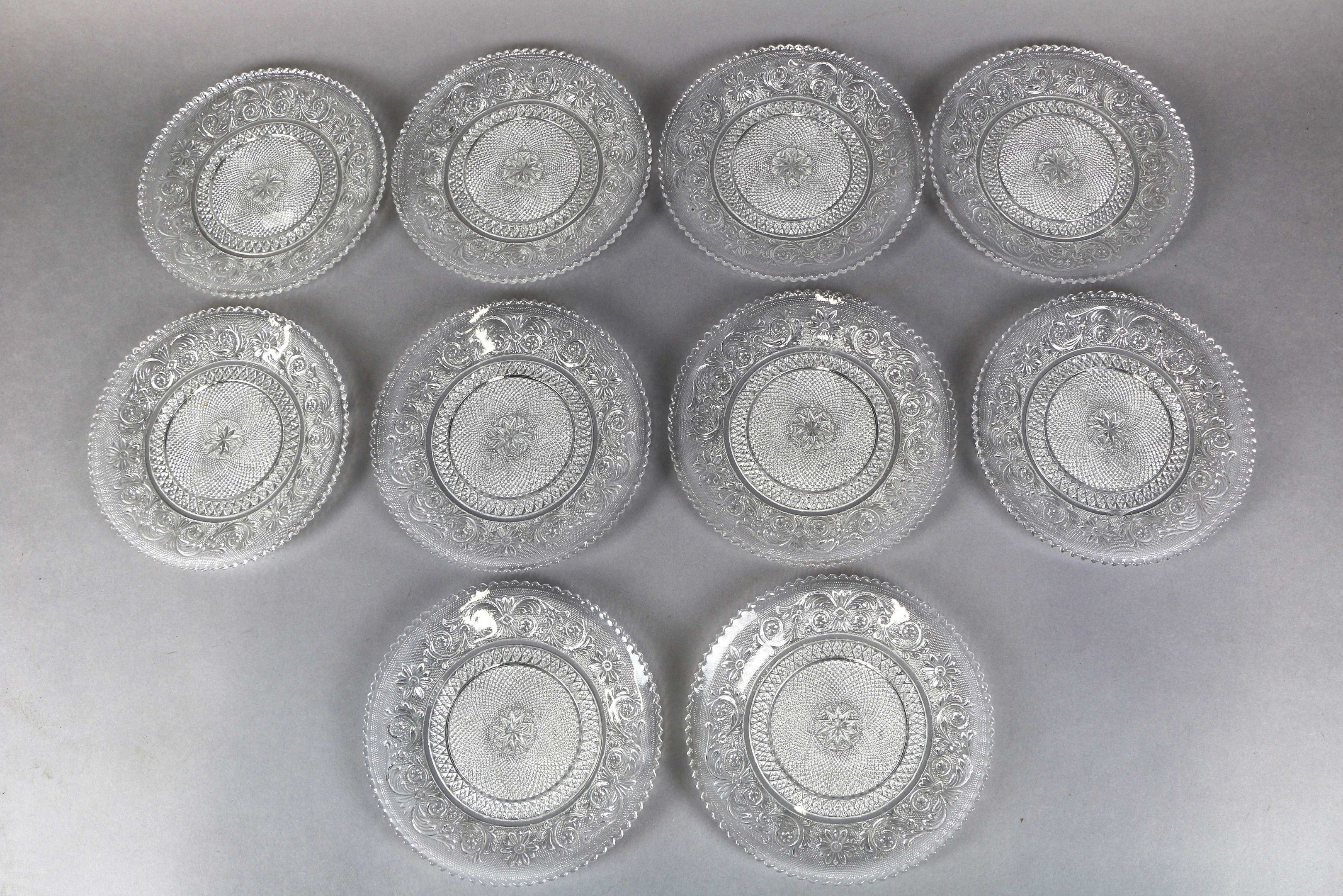 BACCARAT: suite of ten Arabesque crystal dessert plates.