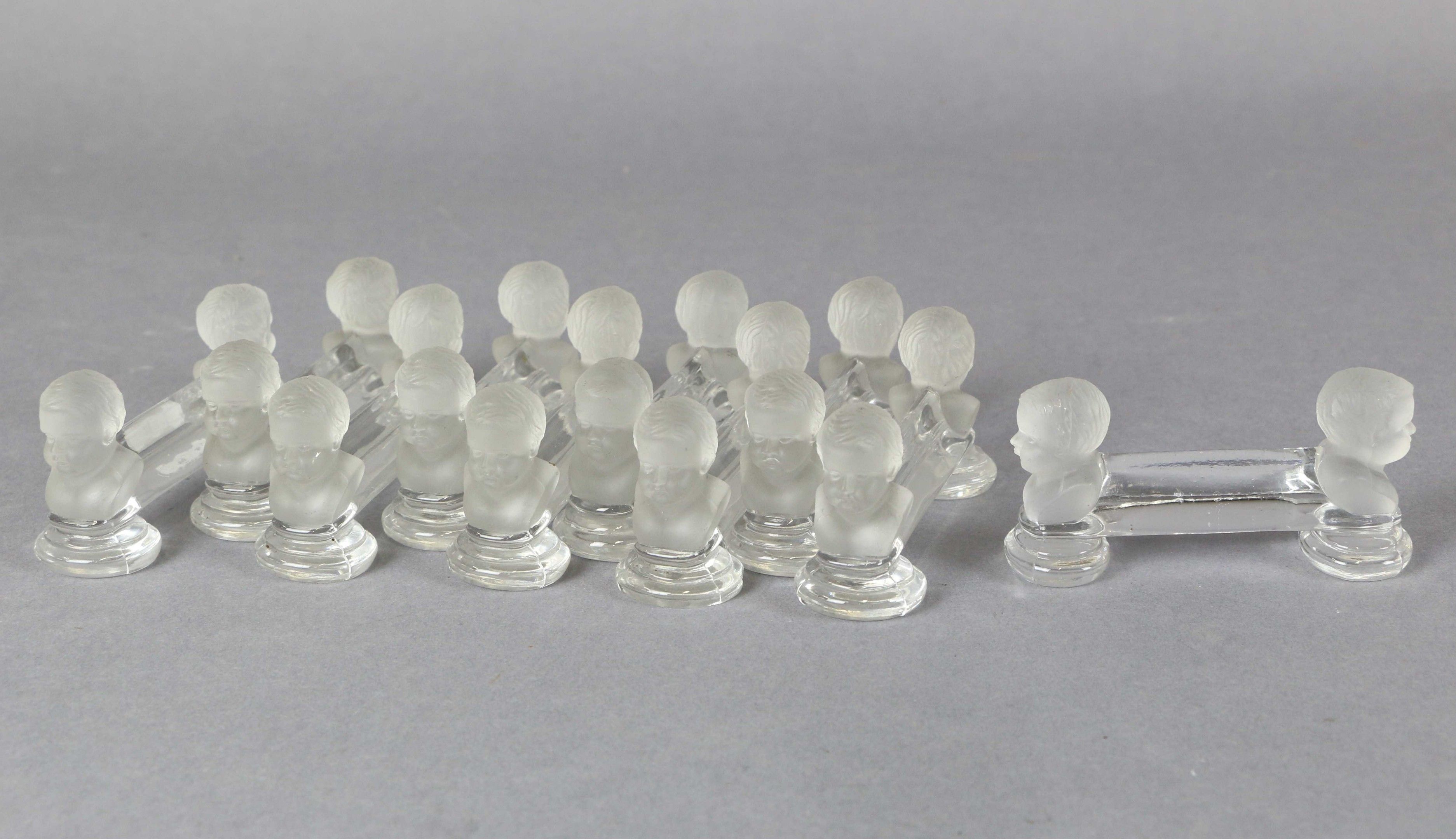 BACCARAT (attributed to): suite of ten crystal HOLDERS with frosted putti heads.