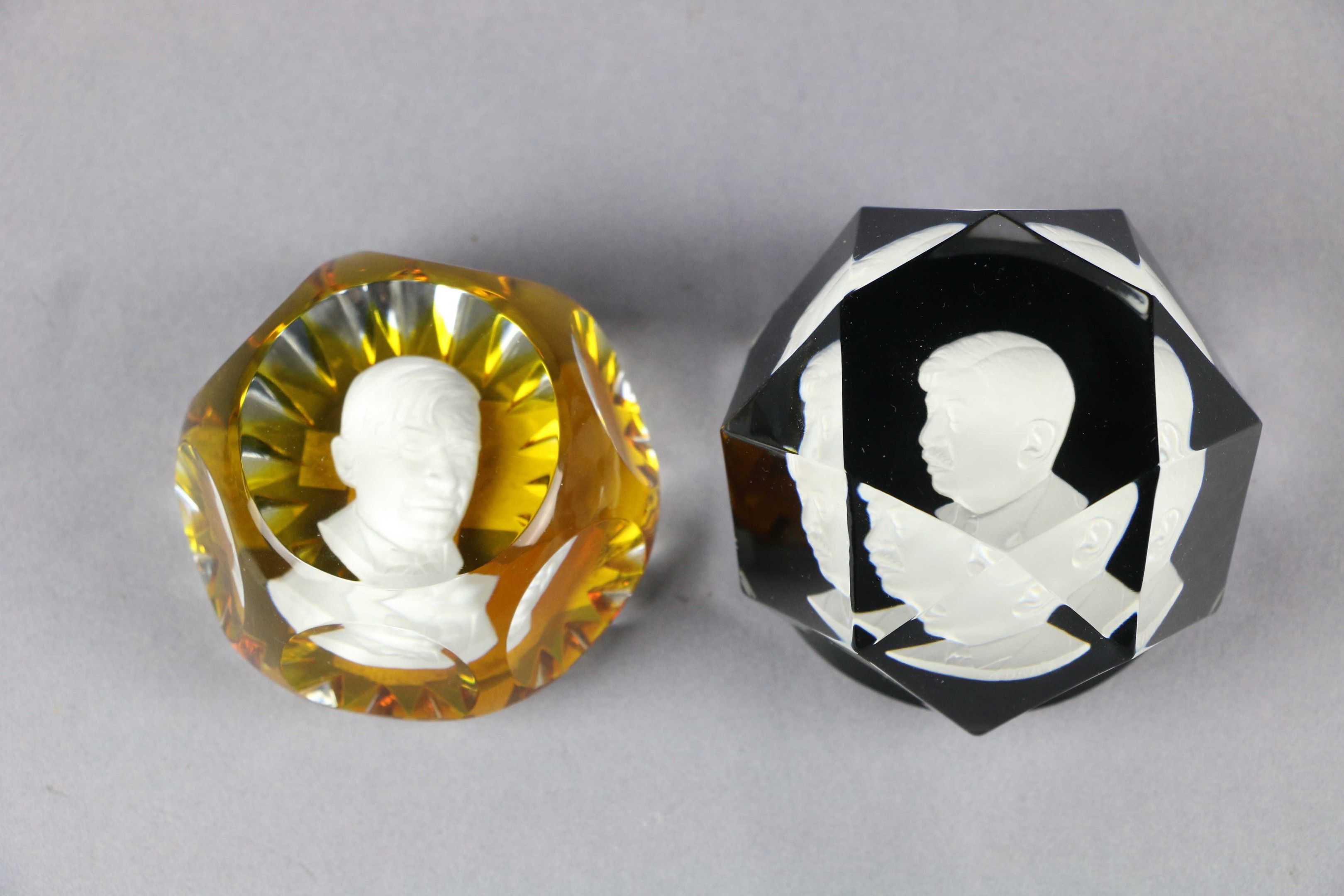 The other decorated with a crystallo-ceram representing the portrait of Pierre Laval. Faceted cut and upper window, smooth black reverse.