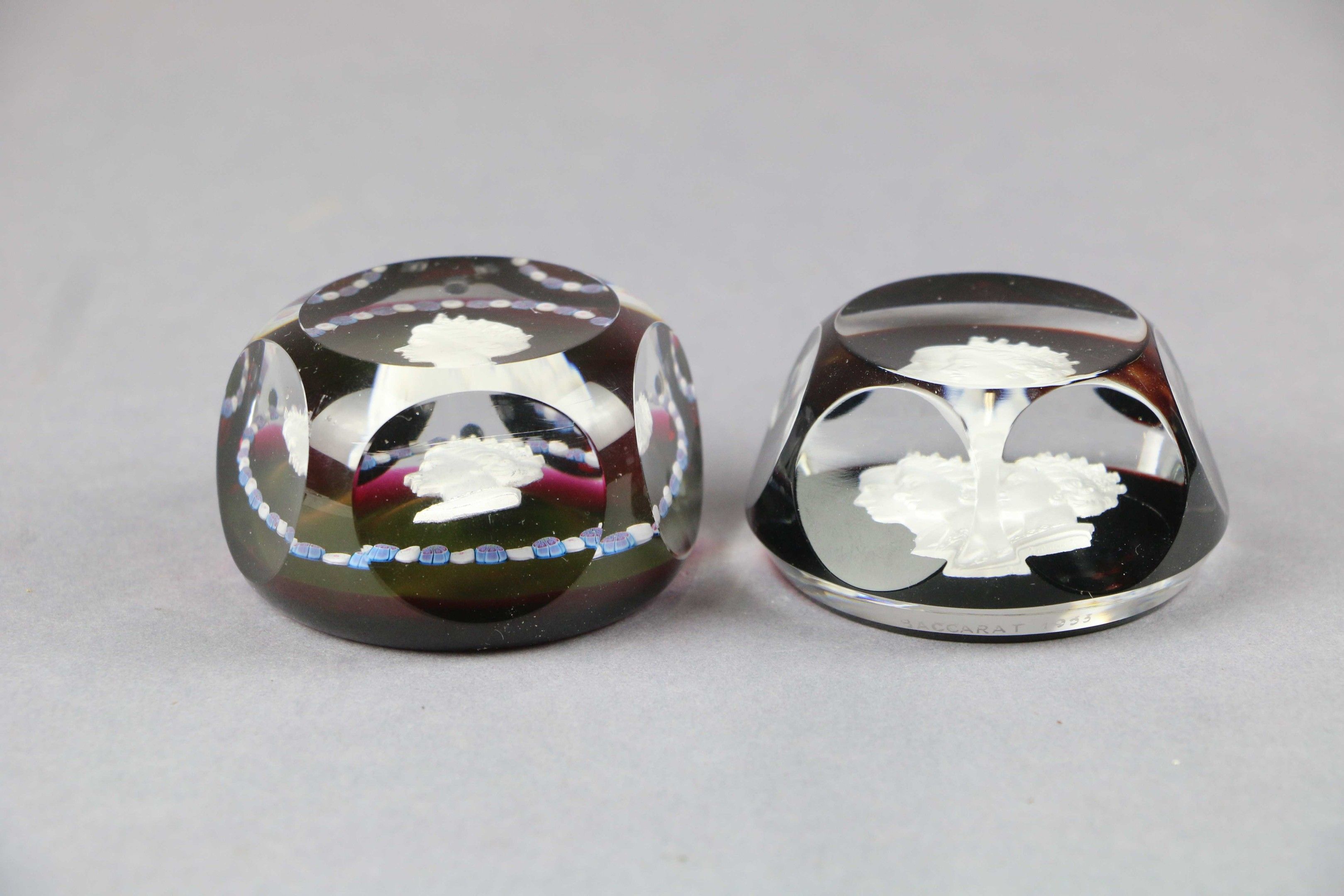 The other decorated with a crystalloceram representing the profile portraits of Elizabeth II and the Duke of Edinburgh. Six-pointed cut, upper window, smooth orange reverse.