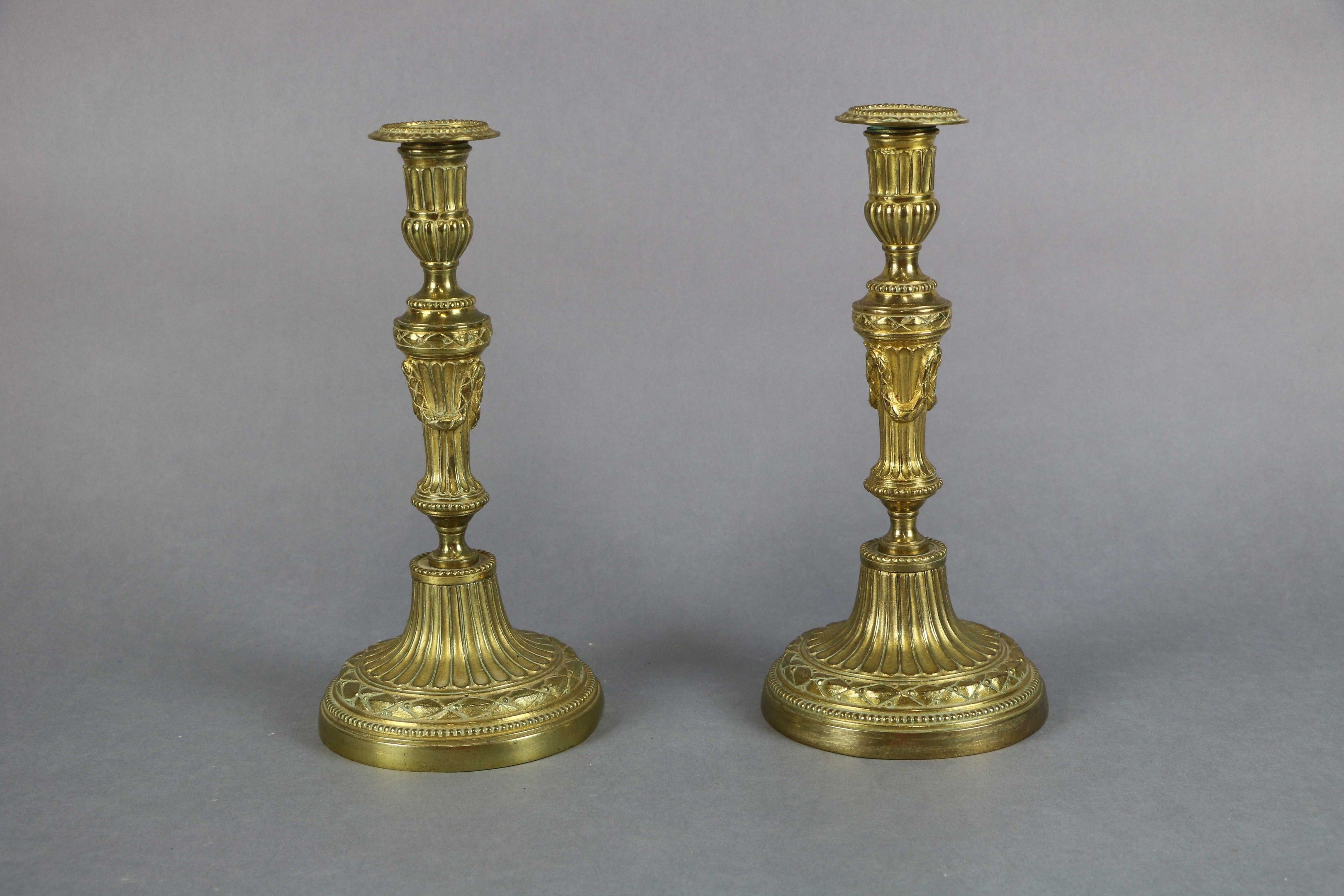 Pair of ormolu CANDLES decorated with laurel garlands, fluti…