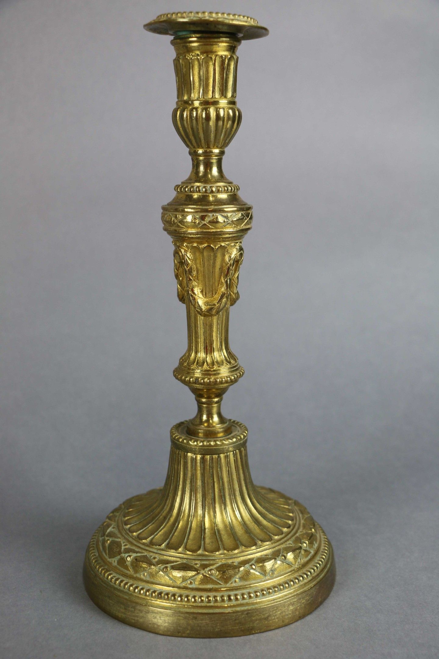 Pair of ormolu CANDLES decorated with laurel garlands, fluting, rows of pearls and gadroons.