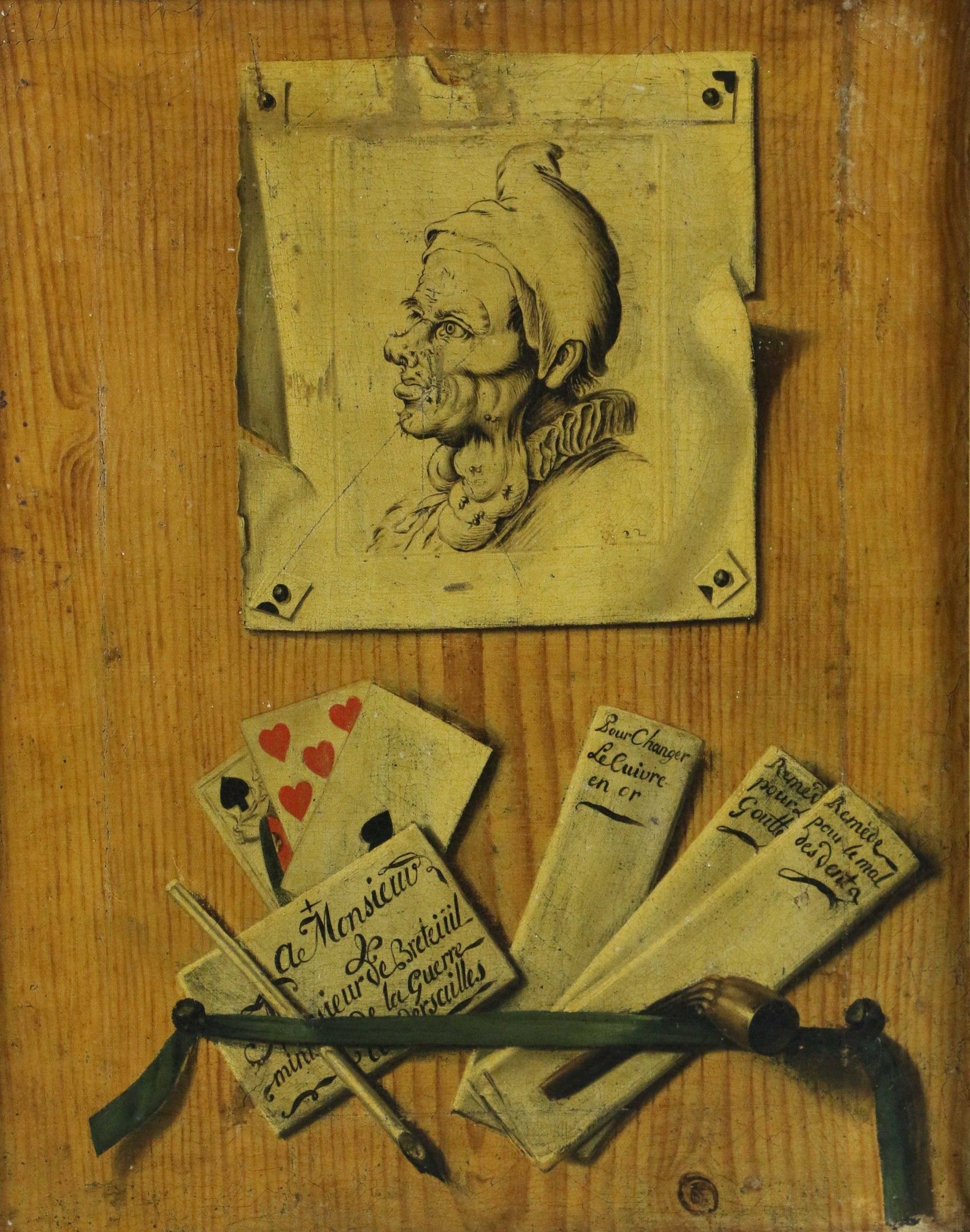 Mural of engravings and playing cards dedicated to Monsieur de Breteuil.