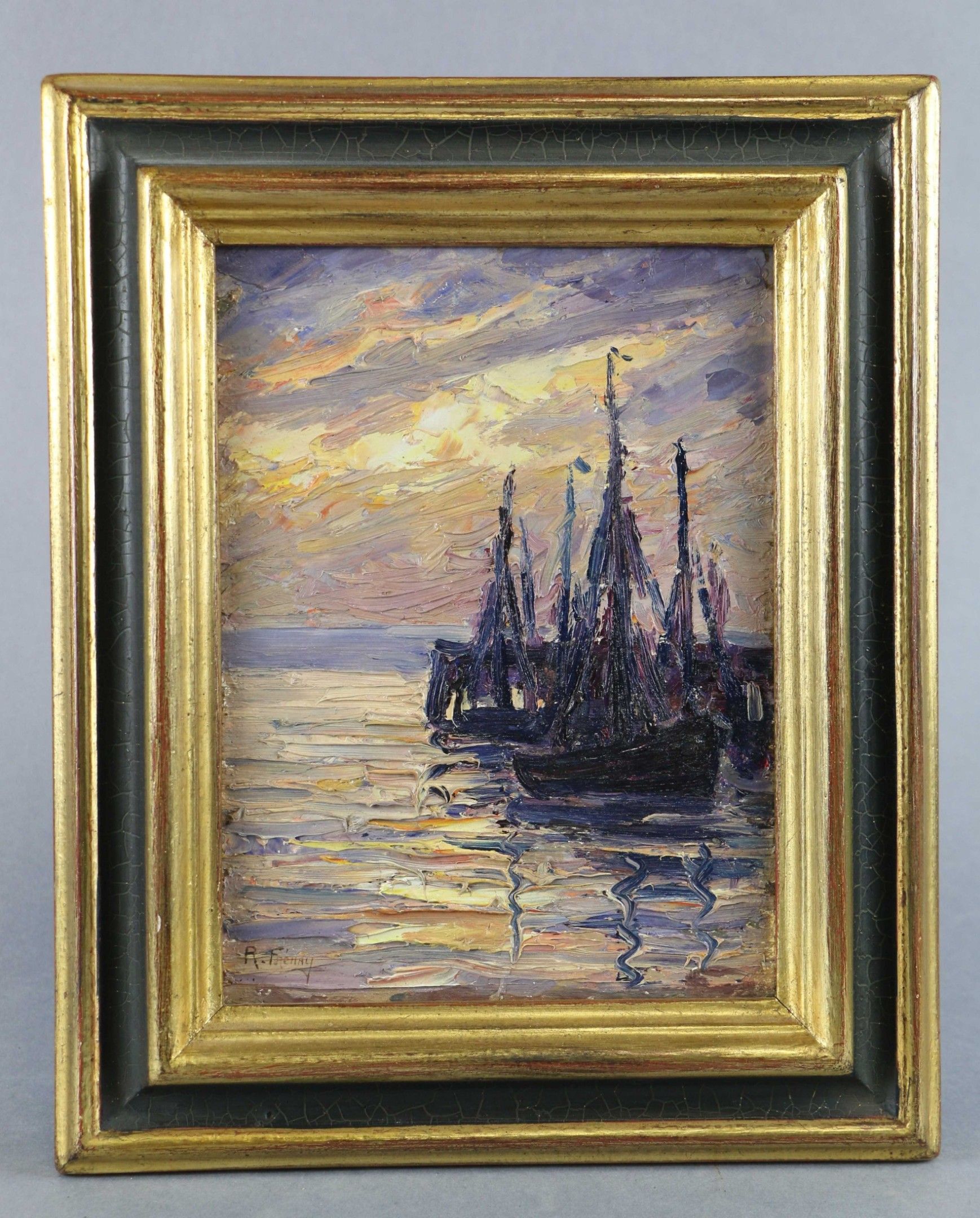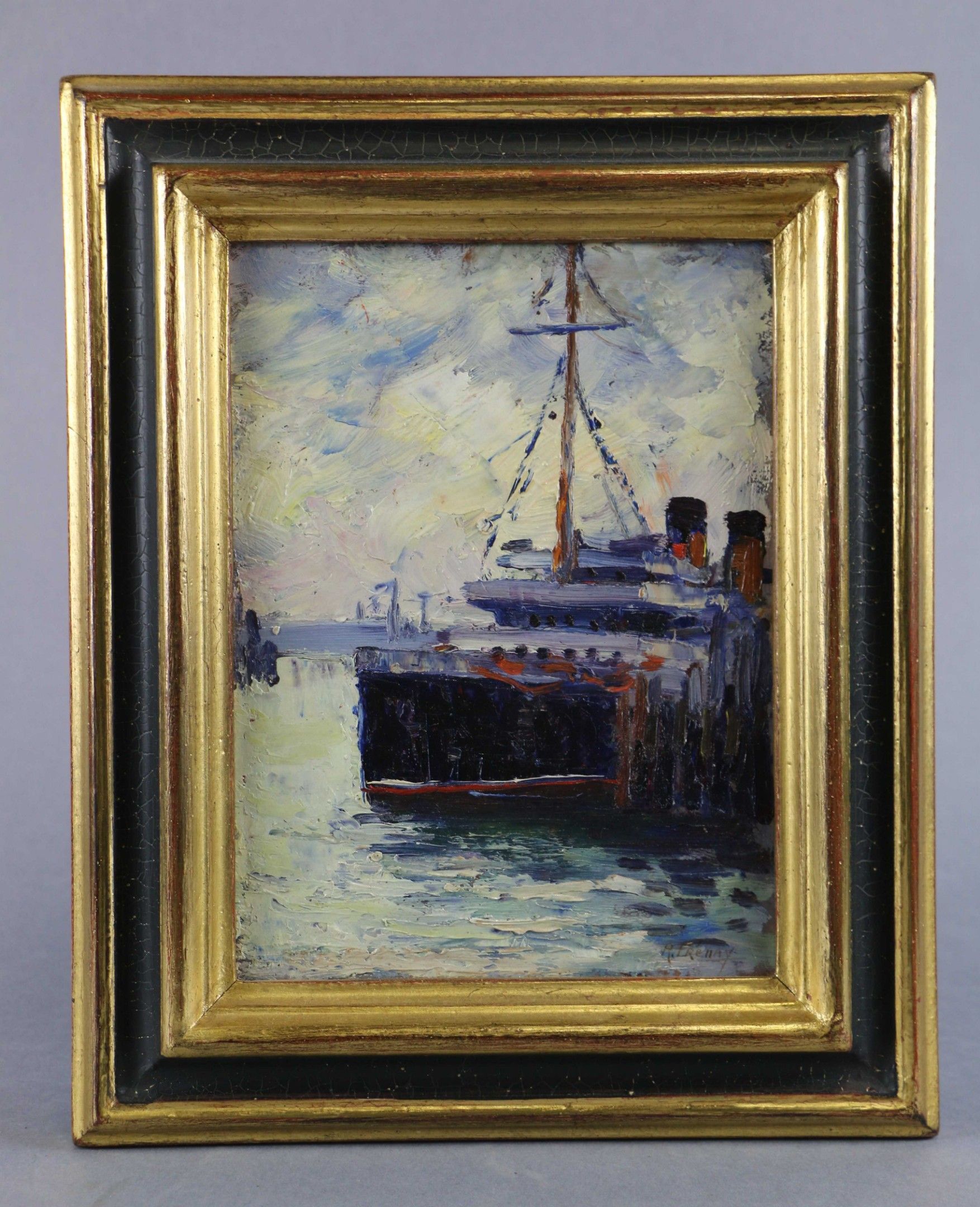 François FRENAY (1893-1973) Liner and sailing boats at quay