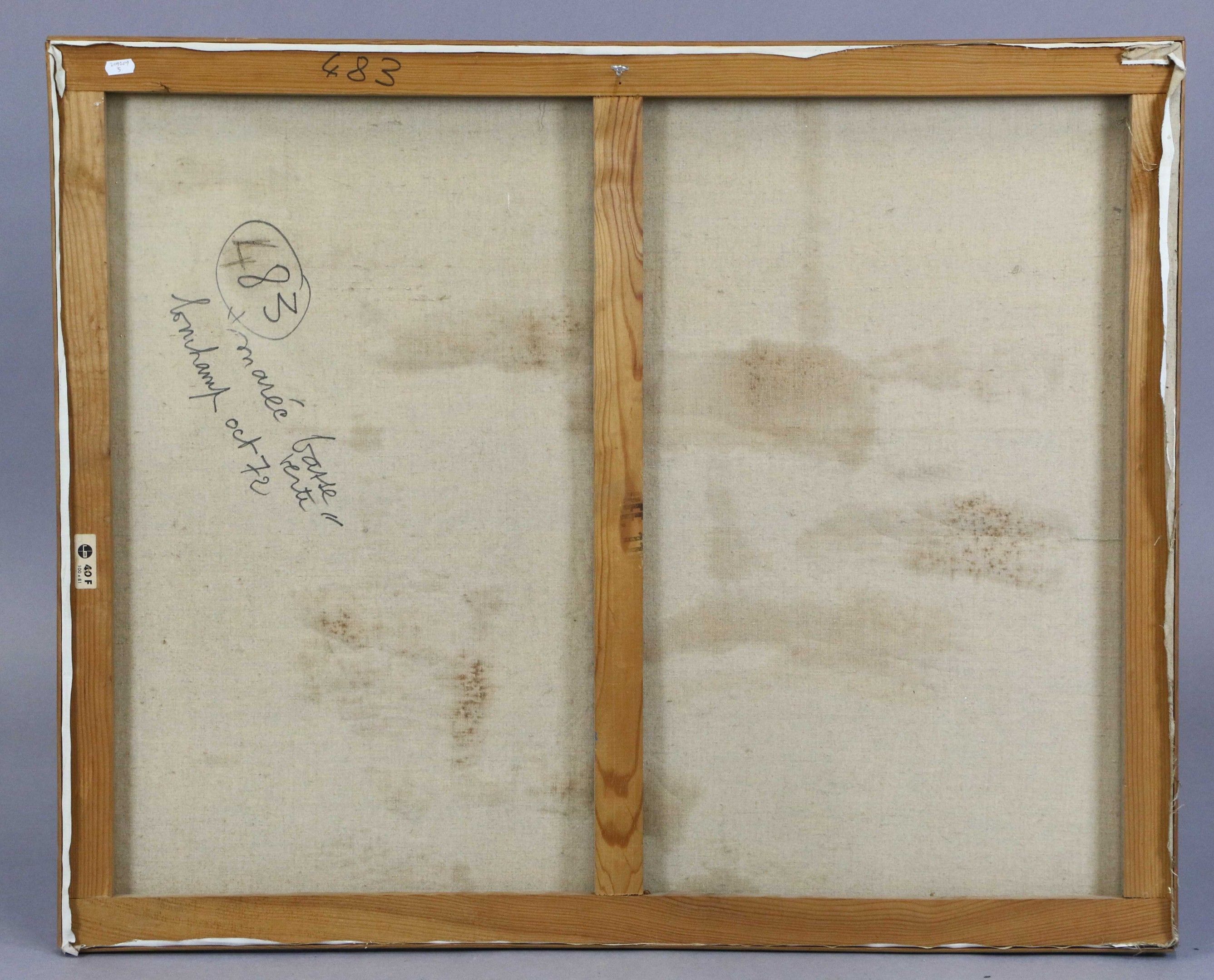 Oil on canvas signed and dated (19)72 lower right, titled and dated October 72 on the back.