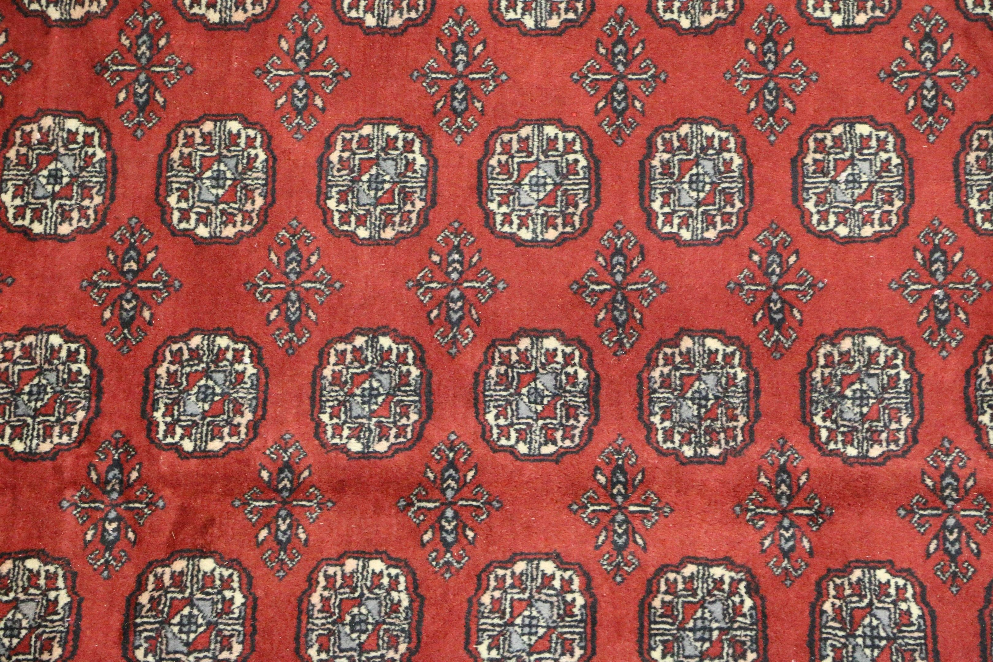 BOUKHARA: large woollen RUG decorated with stylised güls on a red background.
