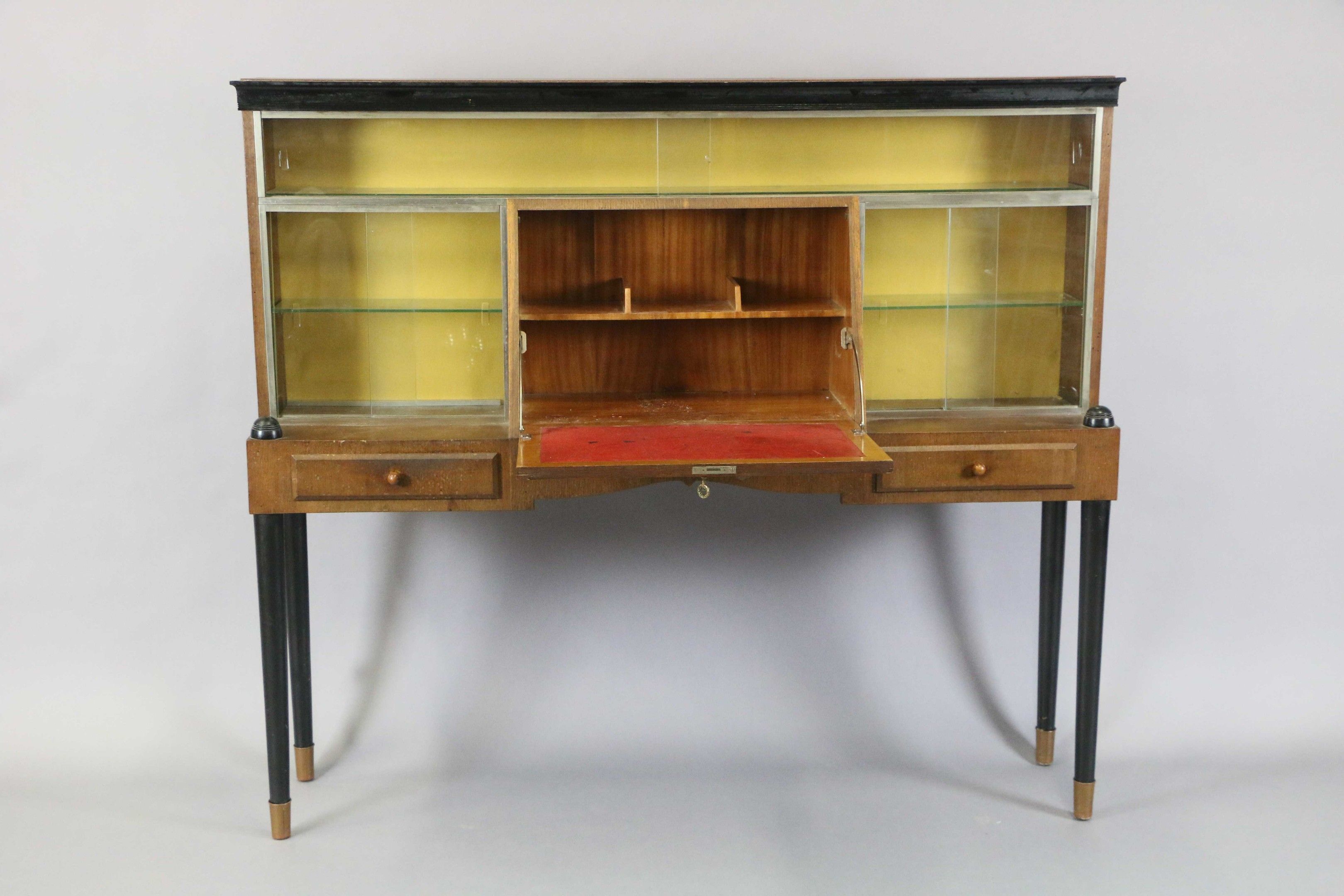 A scriban display cabinet in veneered and blackened wood ope…