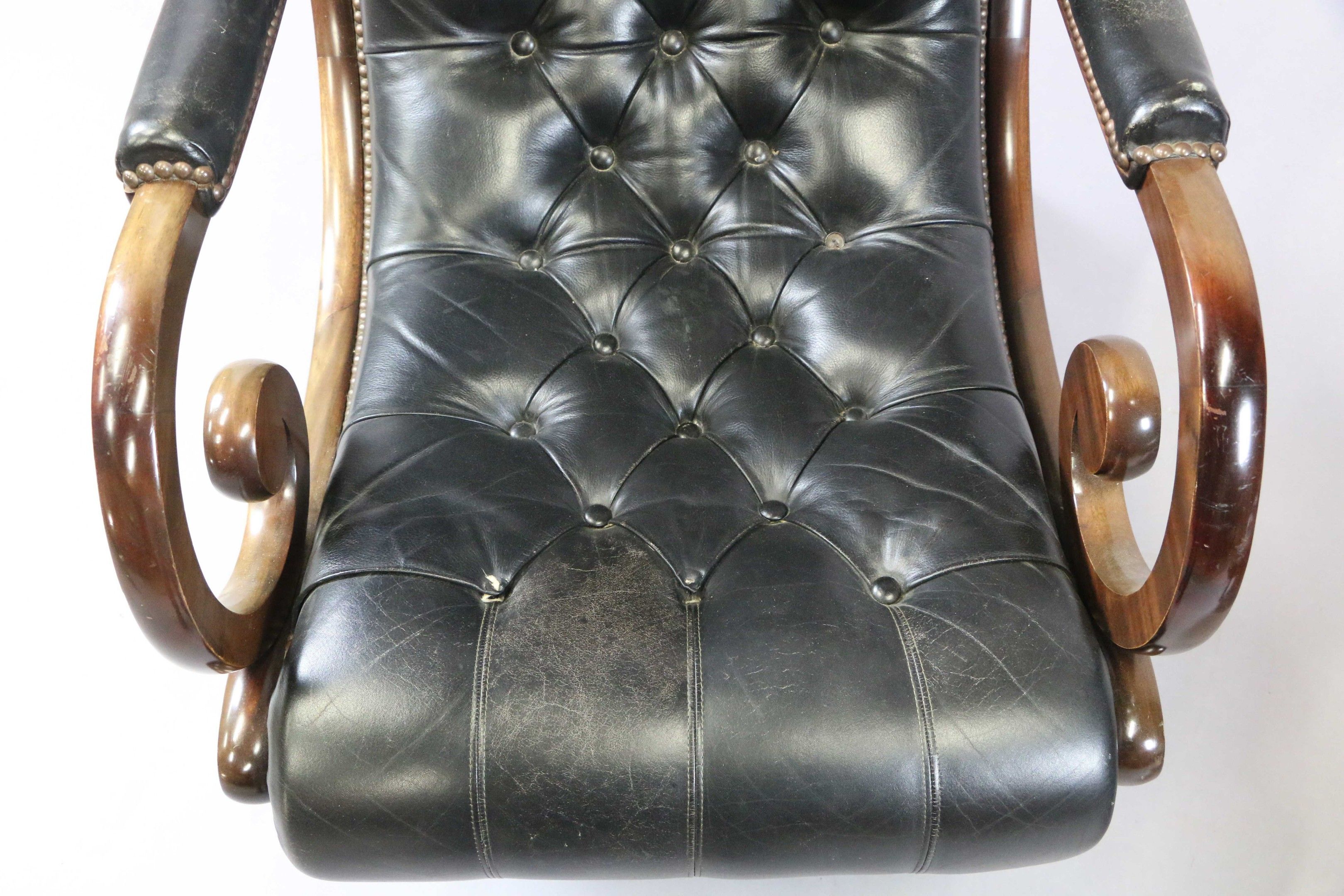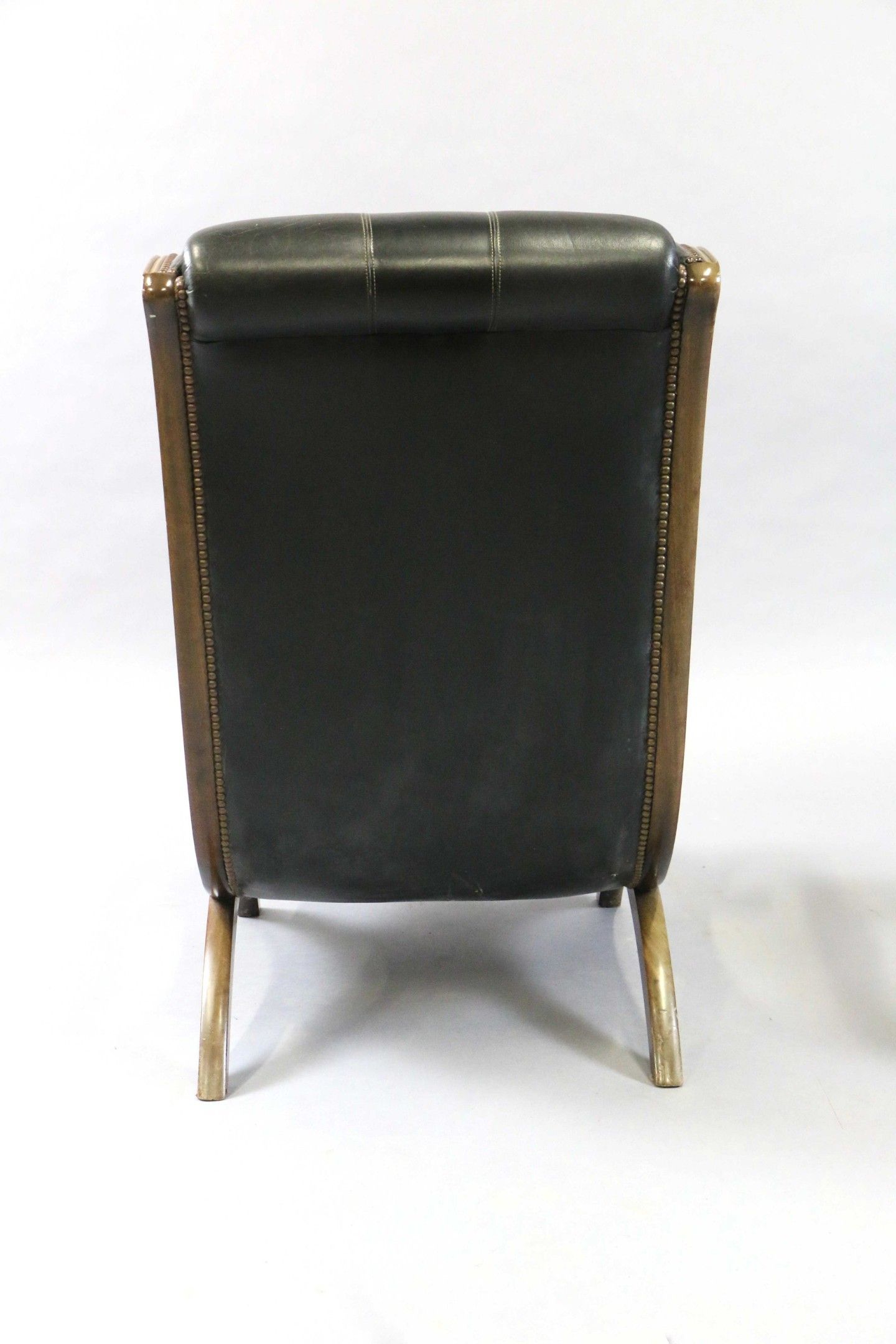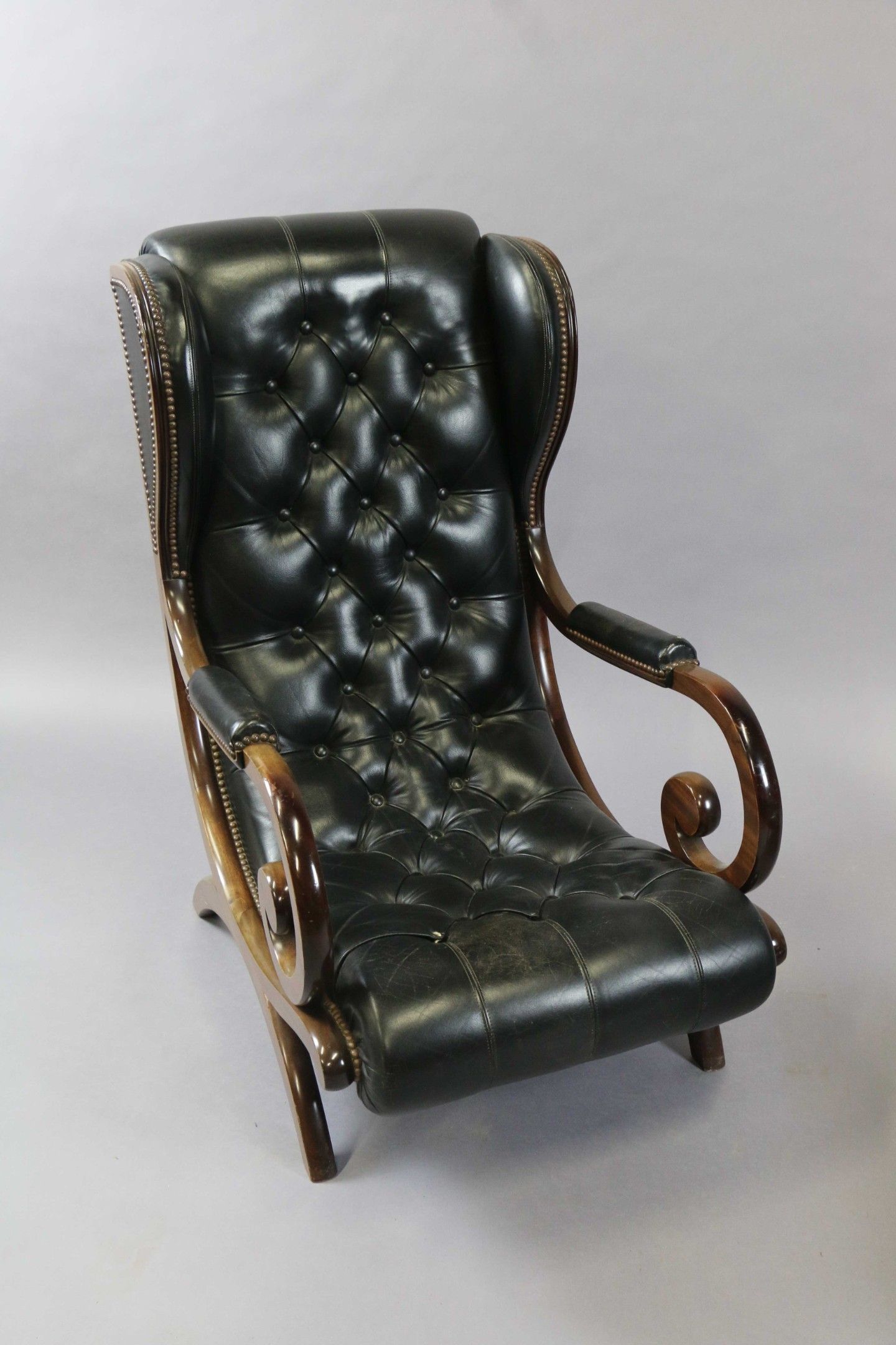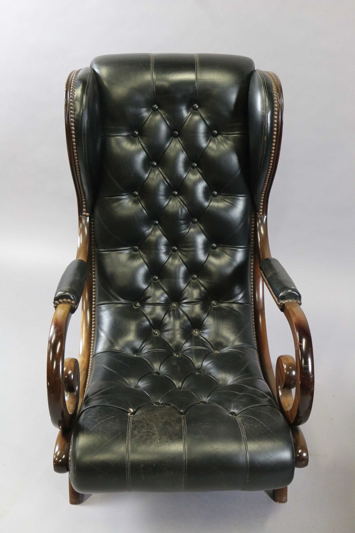 Green leather upholstered Chesterfield type LONG CHAIR with …