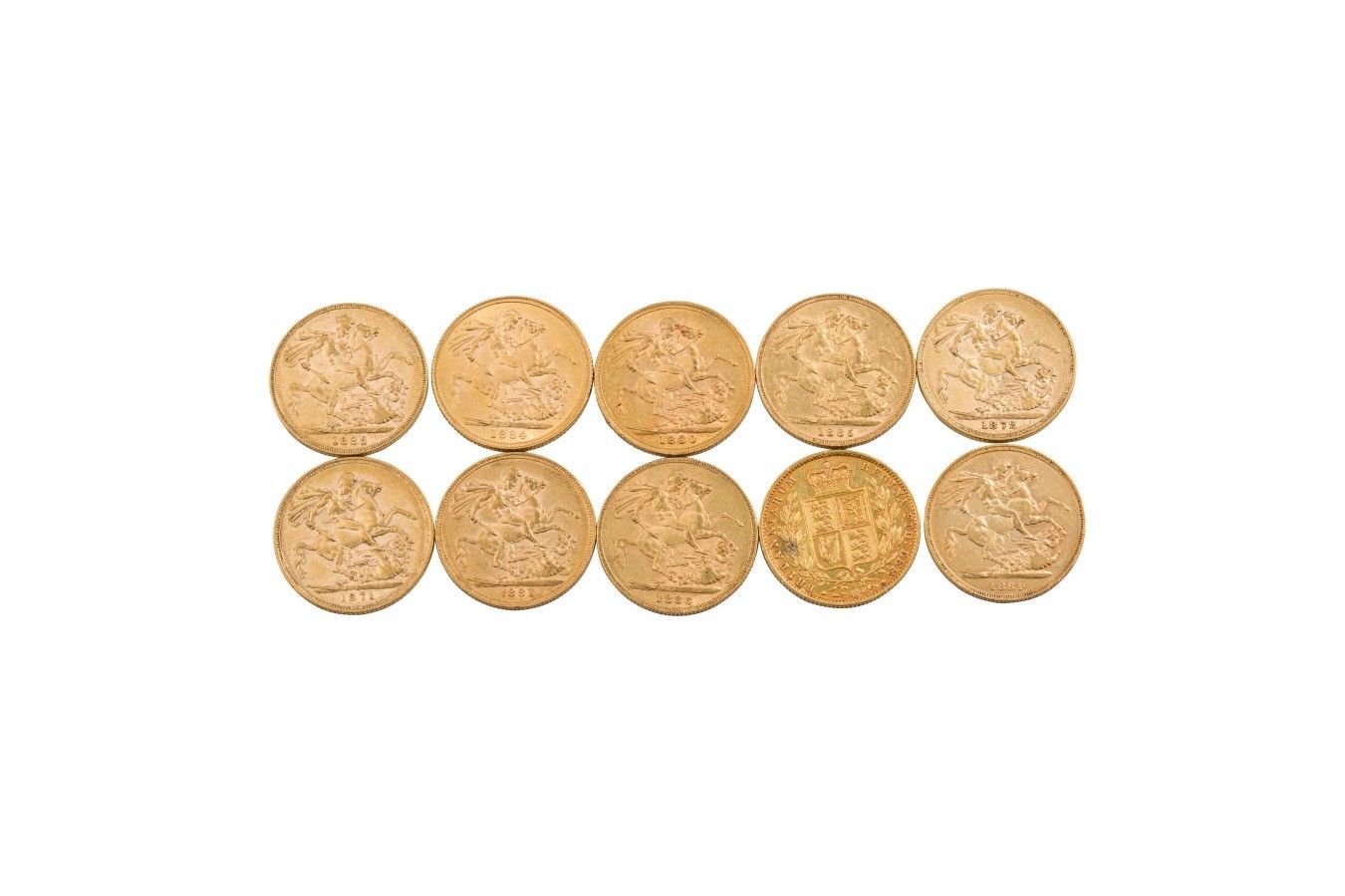 154. 10 gold sovereign coins "Young Victoria" .