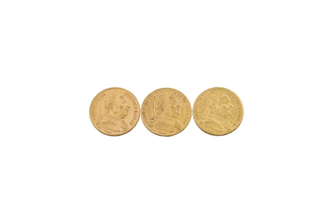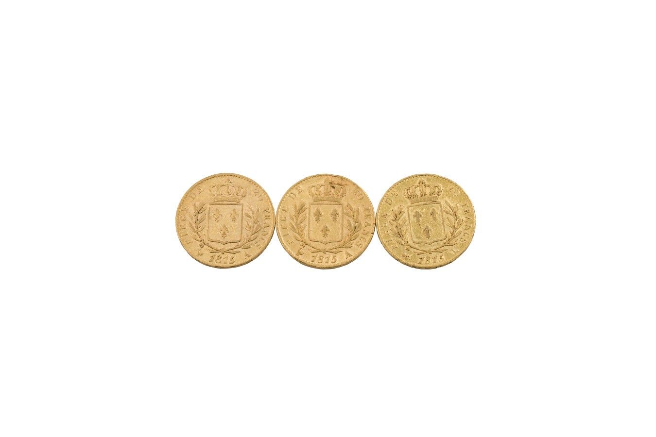 162. 3 pieces of 20 Francs gold Louis XVIII 1815/L and