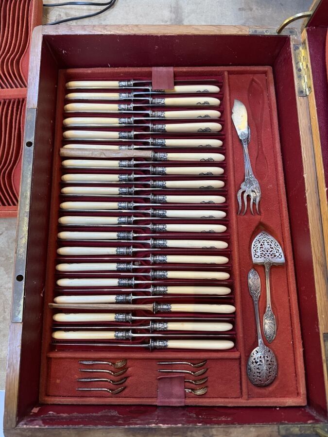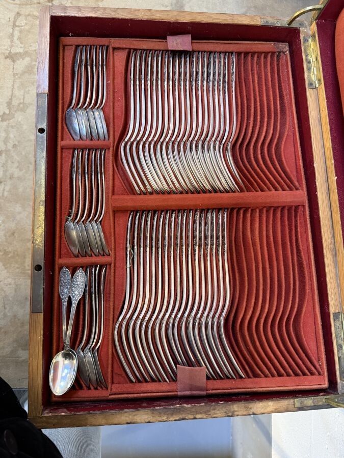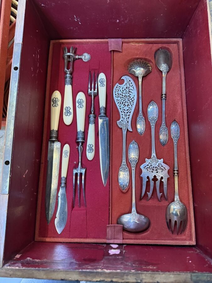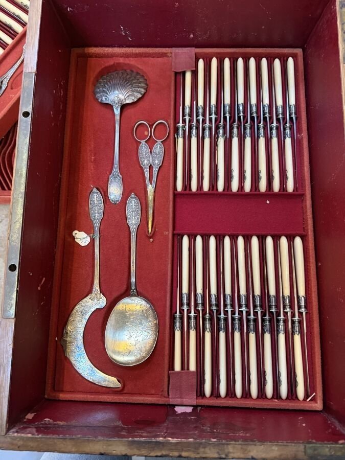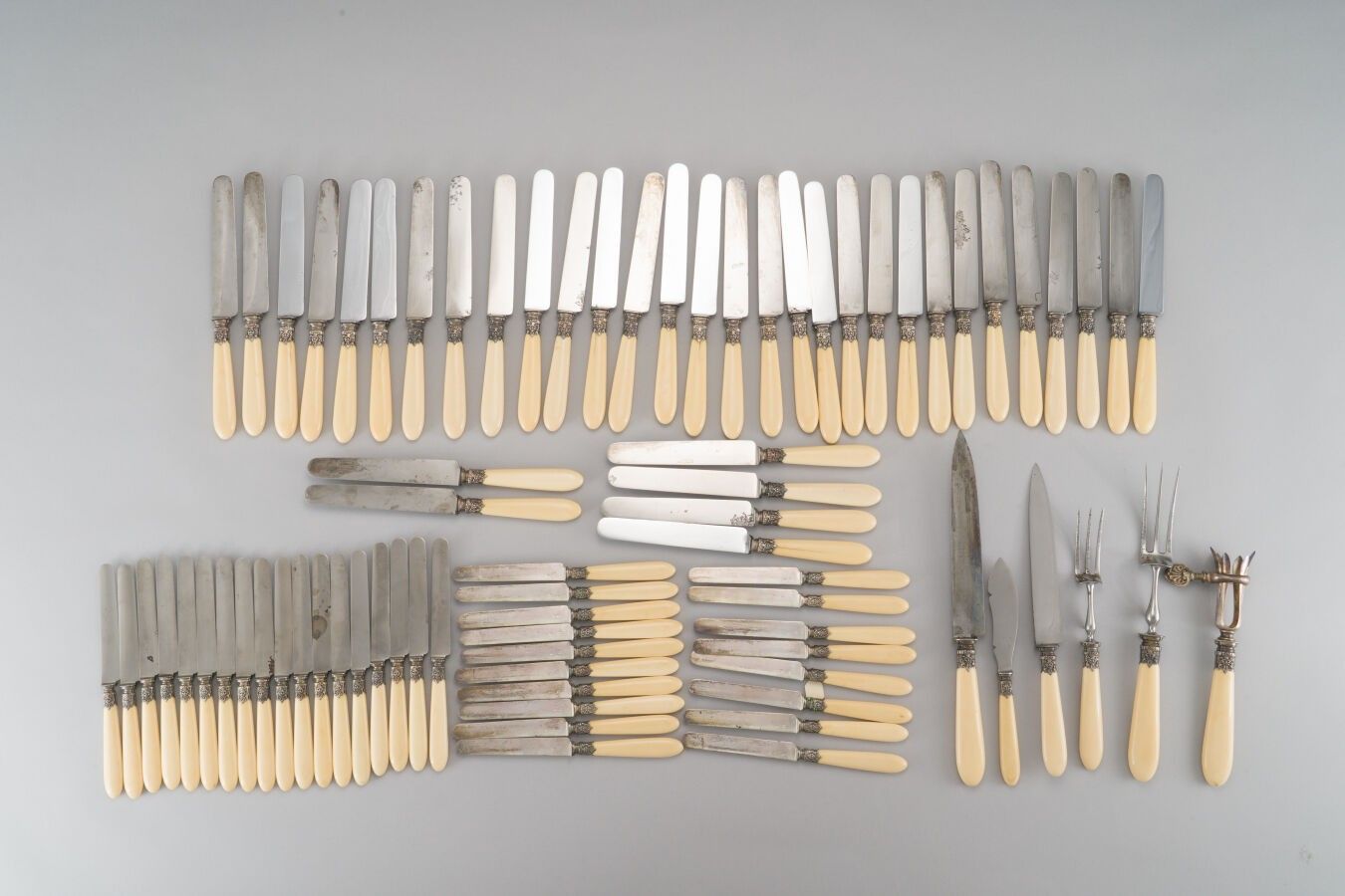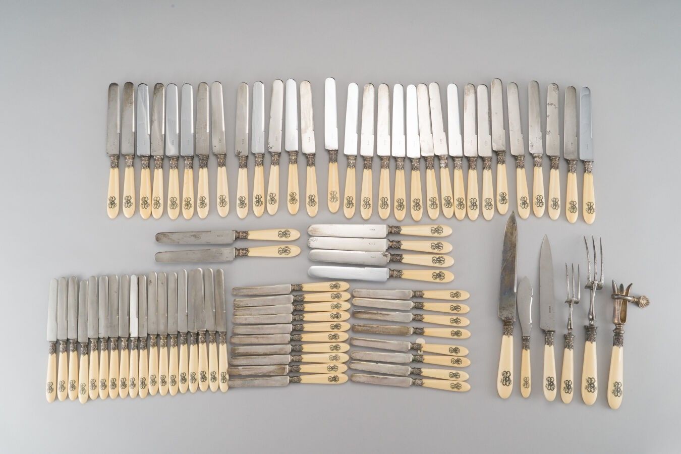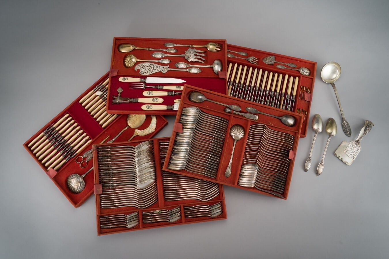 189. A silver 950/1000 neo-Renaissance dinner service decorated with foliage and